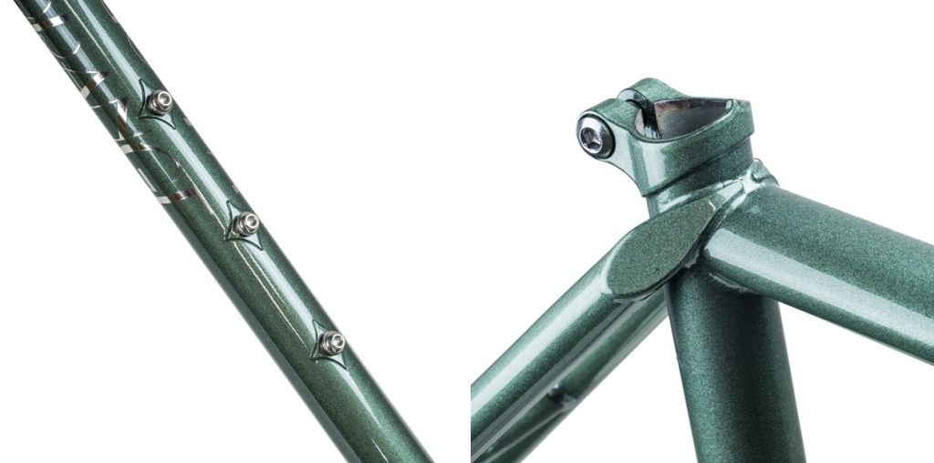 Frame Eyelets: Double eyelets on rear dropouts for racks and fenders. Internal eyelets on seat stays
