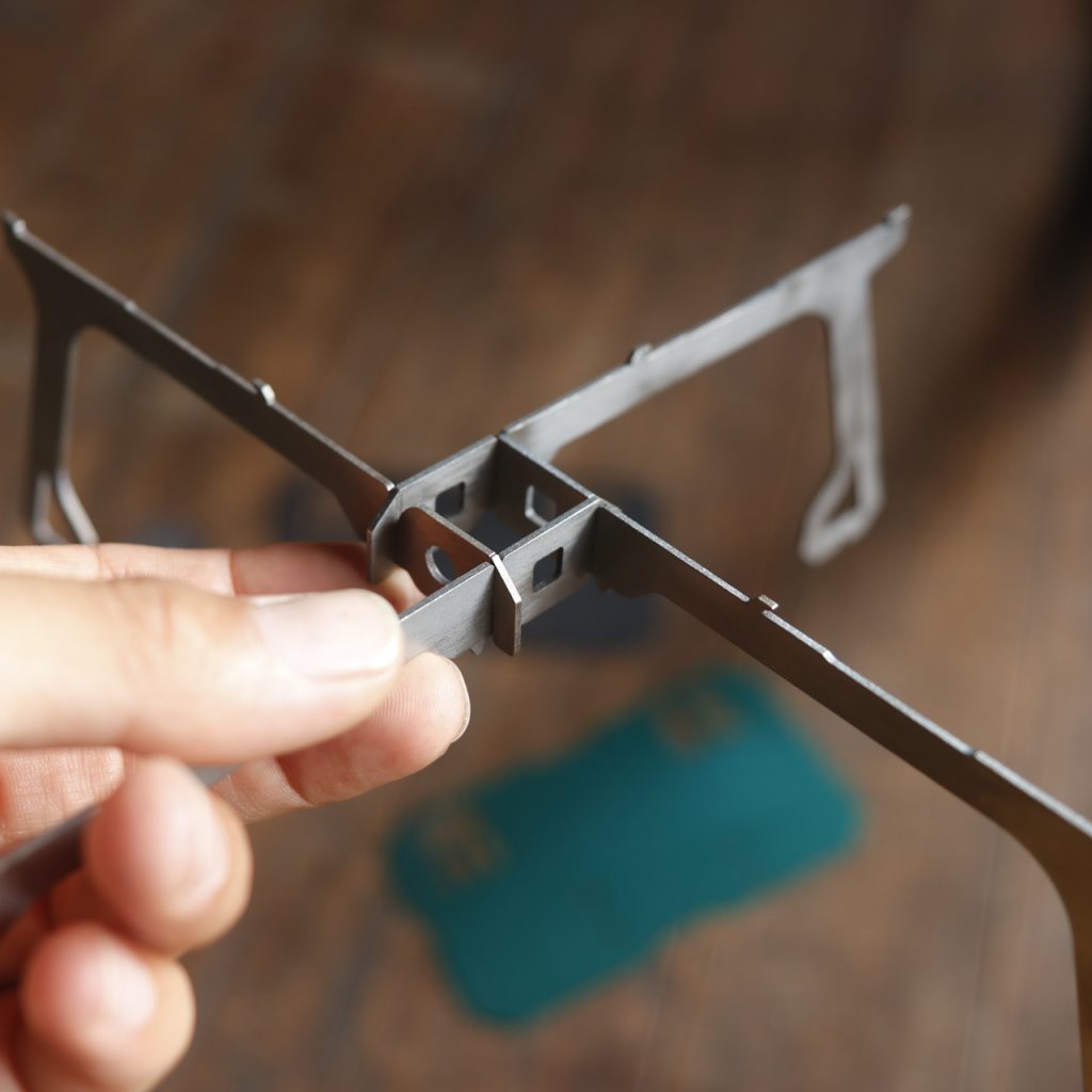 組立てに力はいりません、無理に押し込もうとするとチタン製の脚が曲がってしまうことがありますのでご注意下さい。