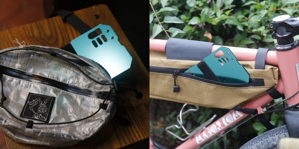 170×95mm、そして僅か4mmの厚さとなる収納サイズはほとんどのフレームバッグやハンドルバーバッグに収めやすく、バイクパッキングを前提として設計されているのが特徴です。