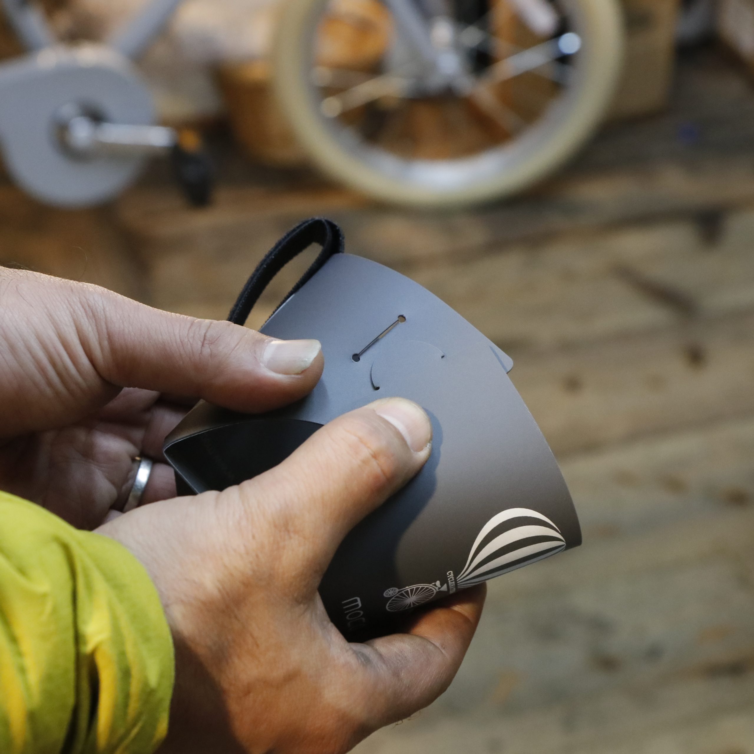 取付はとても簡単。折り線に沿ってカップを組み立てて、マジックテープx1でハンドル周りに取り付けるだけ。