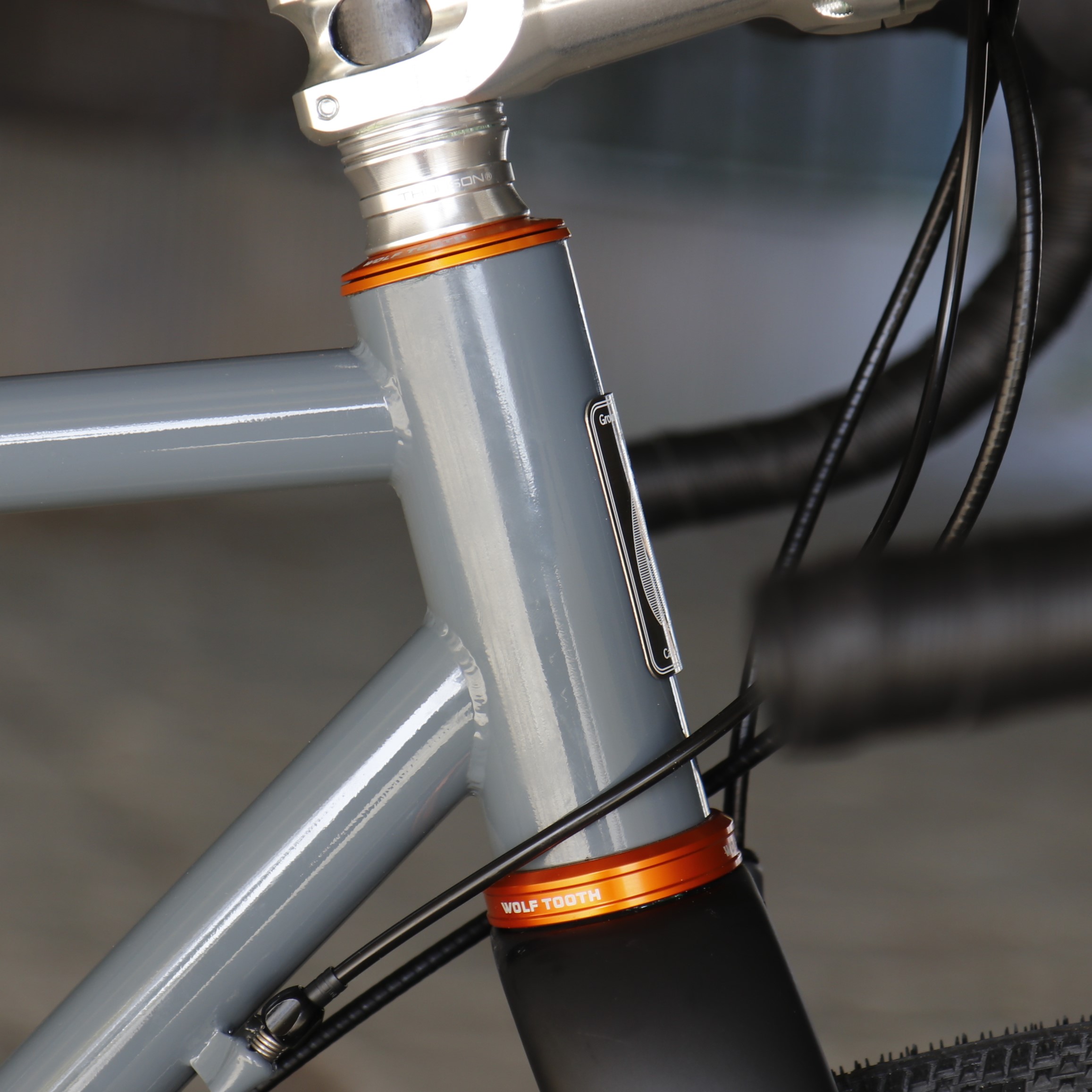 ヘッドパーツには当店でフレーム組みされる方に良くオススメさせて頂いているWOLFTOOTH製を用意。豊富なカラーラインナップ、上下セット、上下別カラーでもチョイス可能。上下で¥19,580(税込)というナイスプライス。航空機グレード6061アルミニウムカップに、エンデューロ社製ステンレスシールドベアリングが付属、シール処理も秀逸な仕様で軽量かつ耐久性に優れたヘッドセットです。