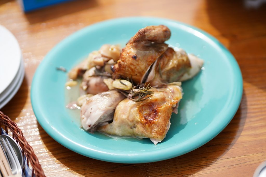 名物のローストチキンはハーブの香りとチキンの旨味が凝縮されて激うま。ダシの出たスープまでいただきました!