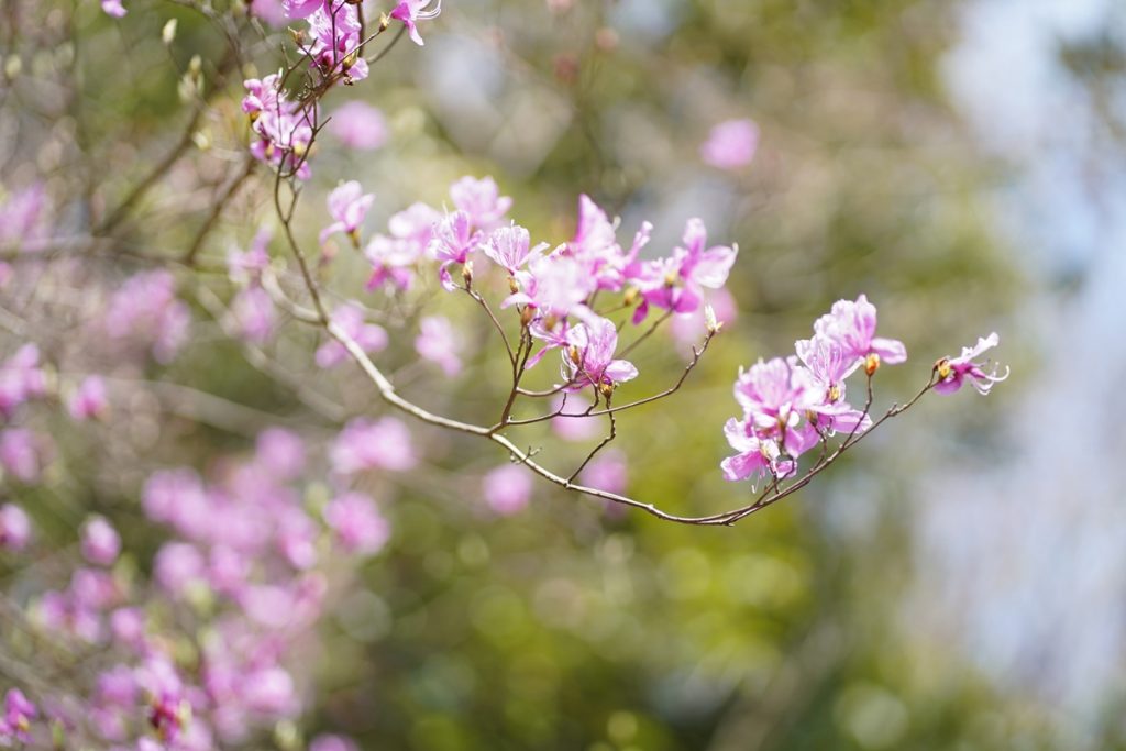 登りはキツイけれど、ふと頭を上げると新緑の山の斜面にもところどころ春の花が咲いていて綺麗でした!
