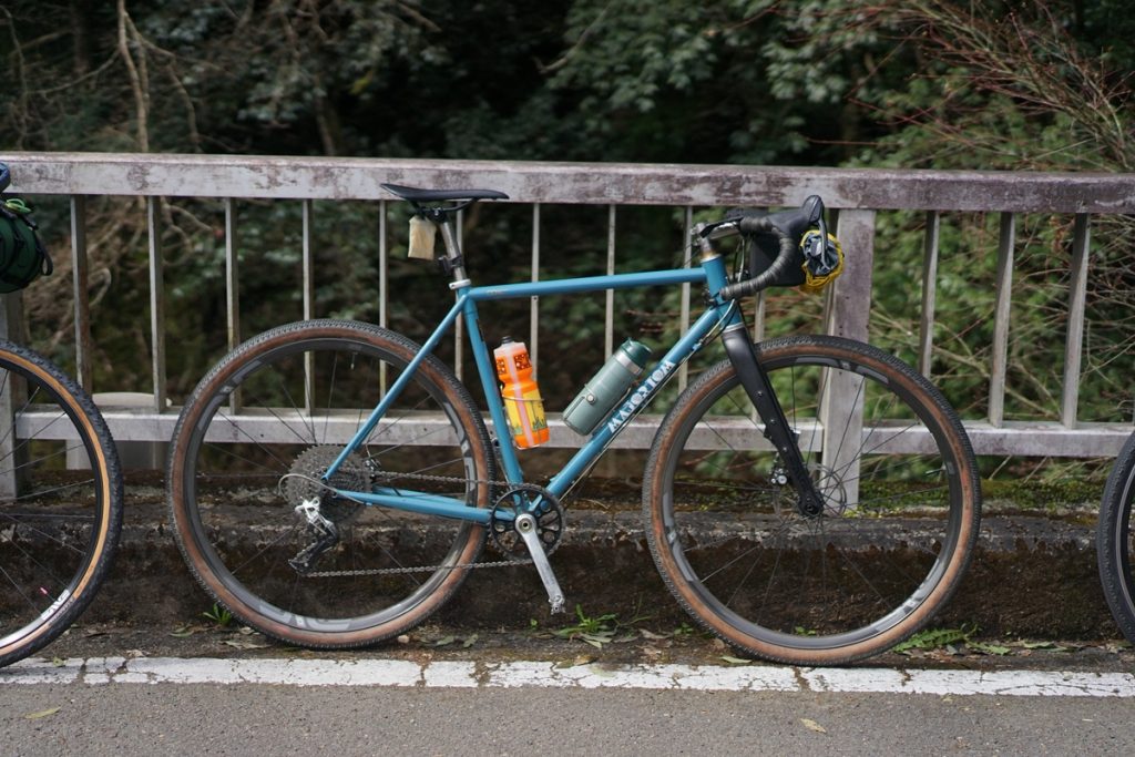 今まで乗っていたロードバイクに比べてタイヤを太くできて、荒れた路面や下り坂での安定感がグッと高まったとのこと。今まで引き返していたガレた林道のような道もその先まで進んで行けそうです。