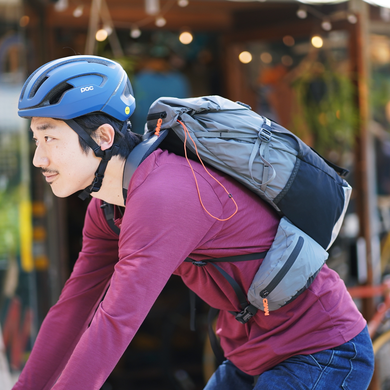 日帰りのハイキングやライドはもちろん、バイクパッキングと組み合わせればキャンプライドにも使えるちょうど良いサイズ。