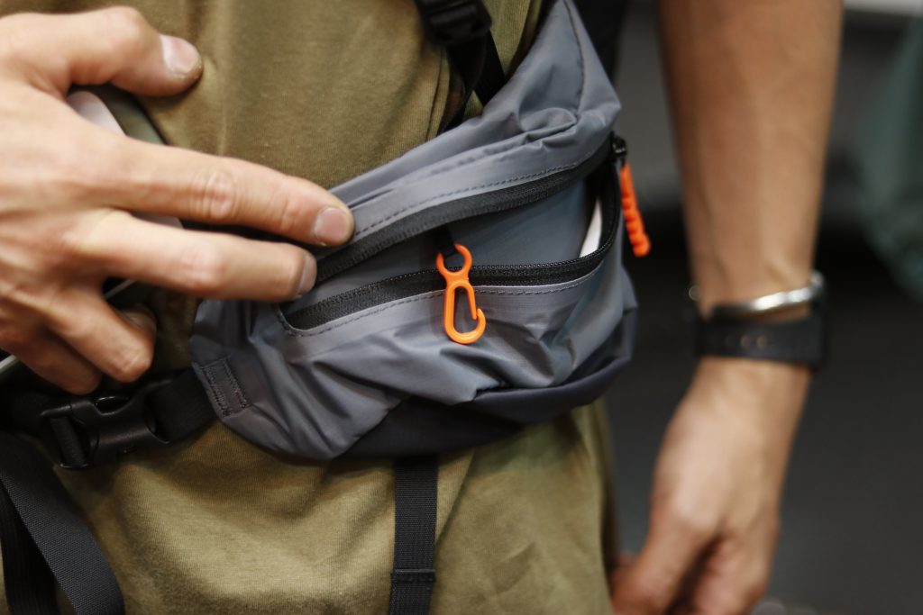 キーリング付きのウエストハーネスは補給食の収納にオススメ。