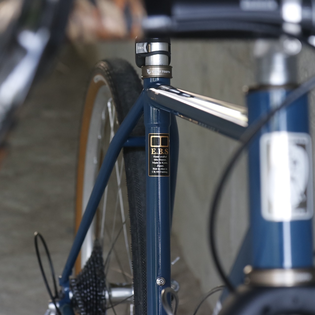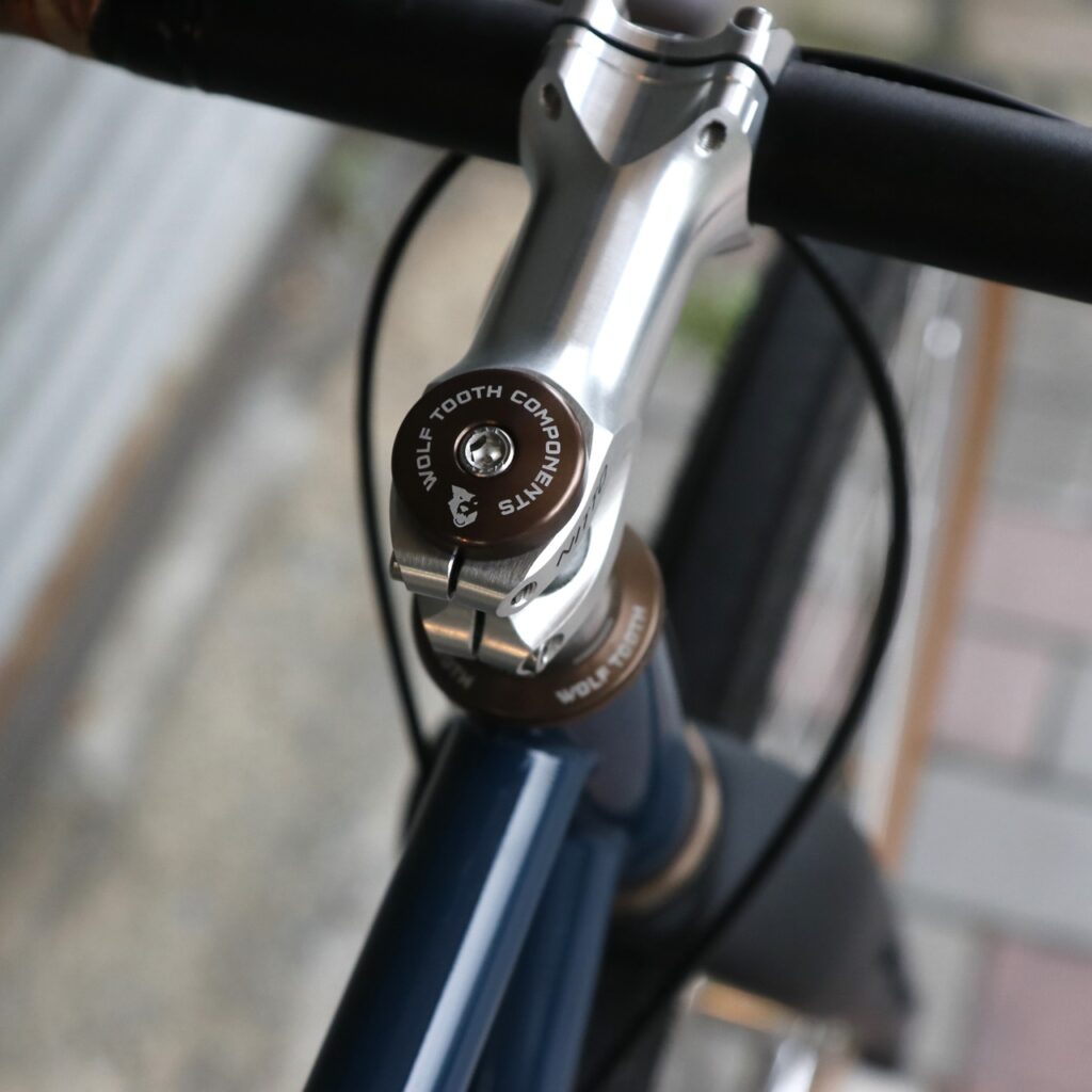 フレームカラーの鉄紺と絶妙なバランスの WOLFTOOTH ヘッドパーツはEspresso. 防水性に優れる&豊富なカラーラインナップで当店定番ヘッドパーツ