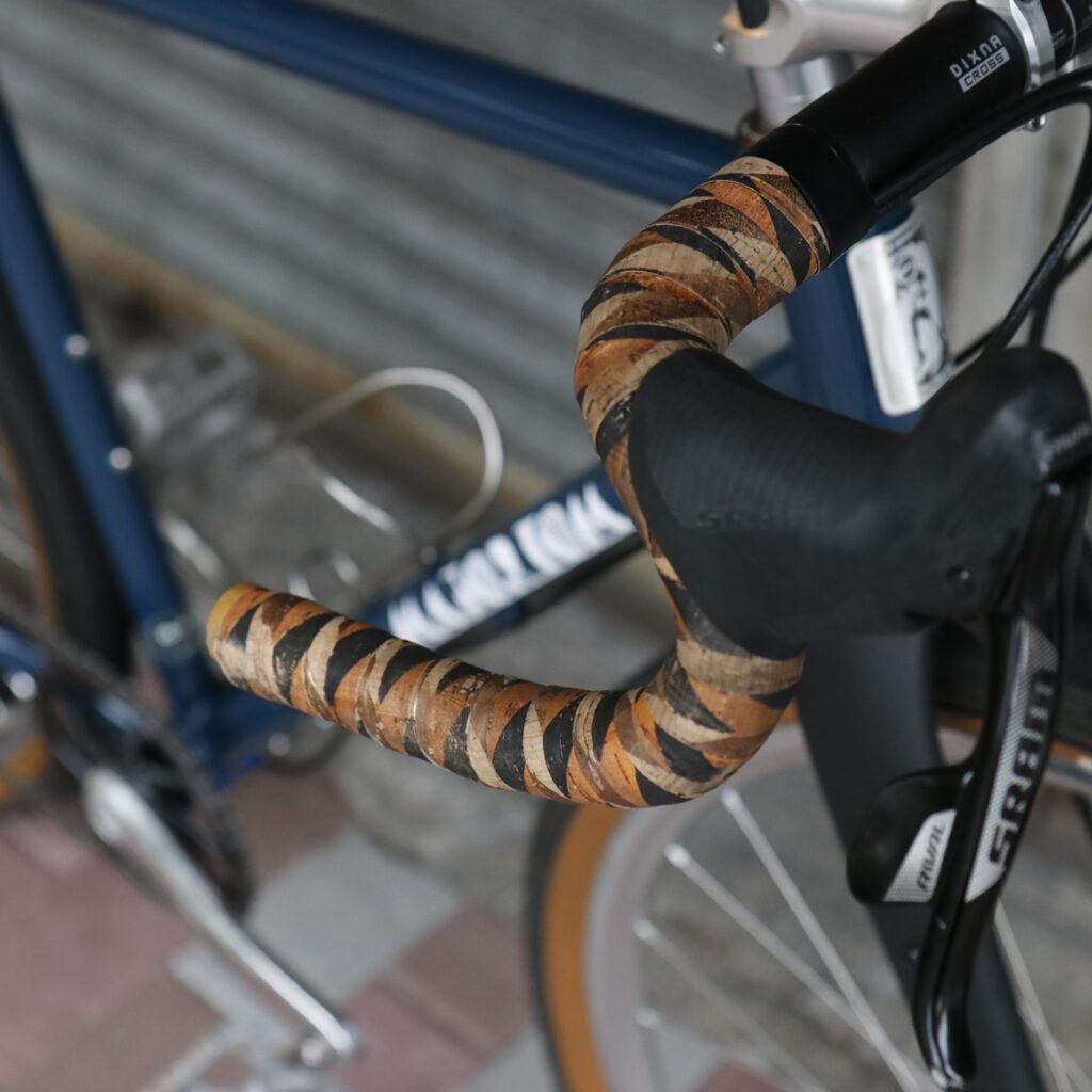 BTP のコルクバーテープはクッション性抜群でグラベルバイクとも好相性 使い込む程に味わい深くなる様はレザーサドルとも合わせやすい
