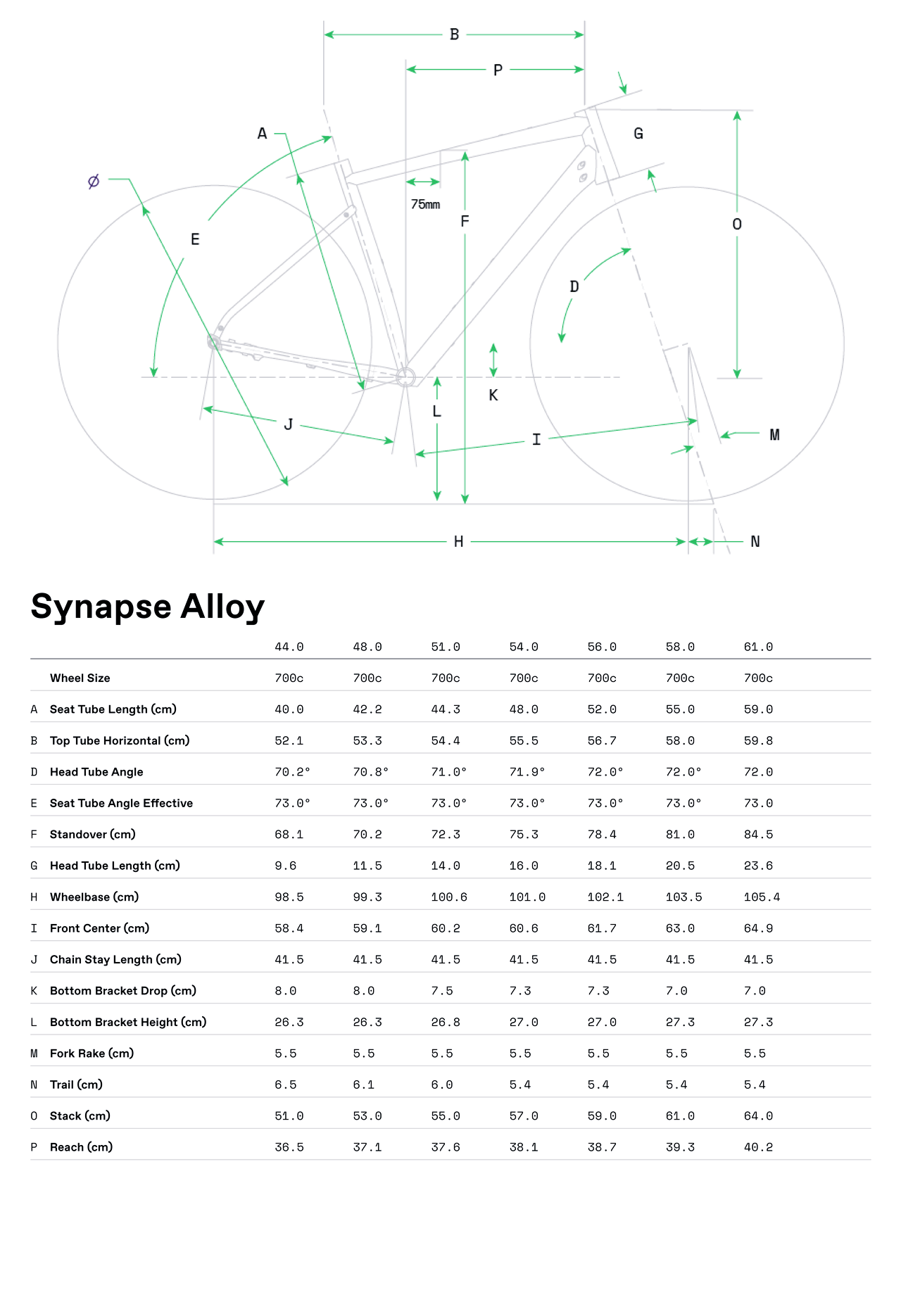 Synapse Carbon, integrated crown race, 12x100mm thru-axle, internal routing, flat mount brake, fender mounts -