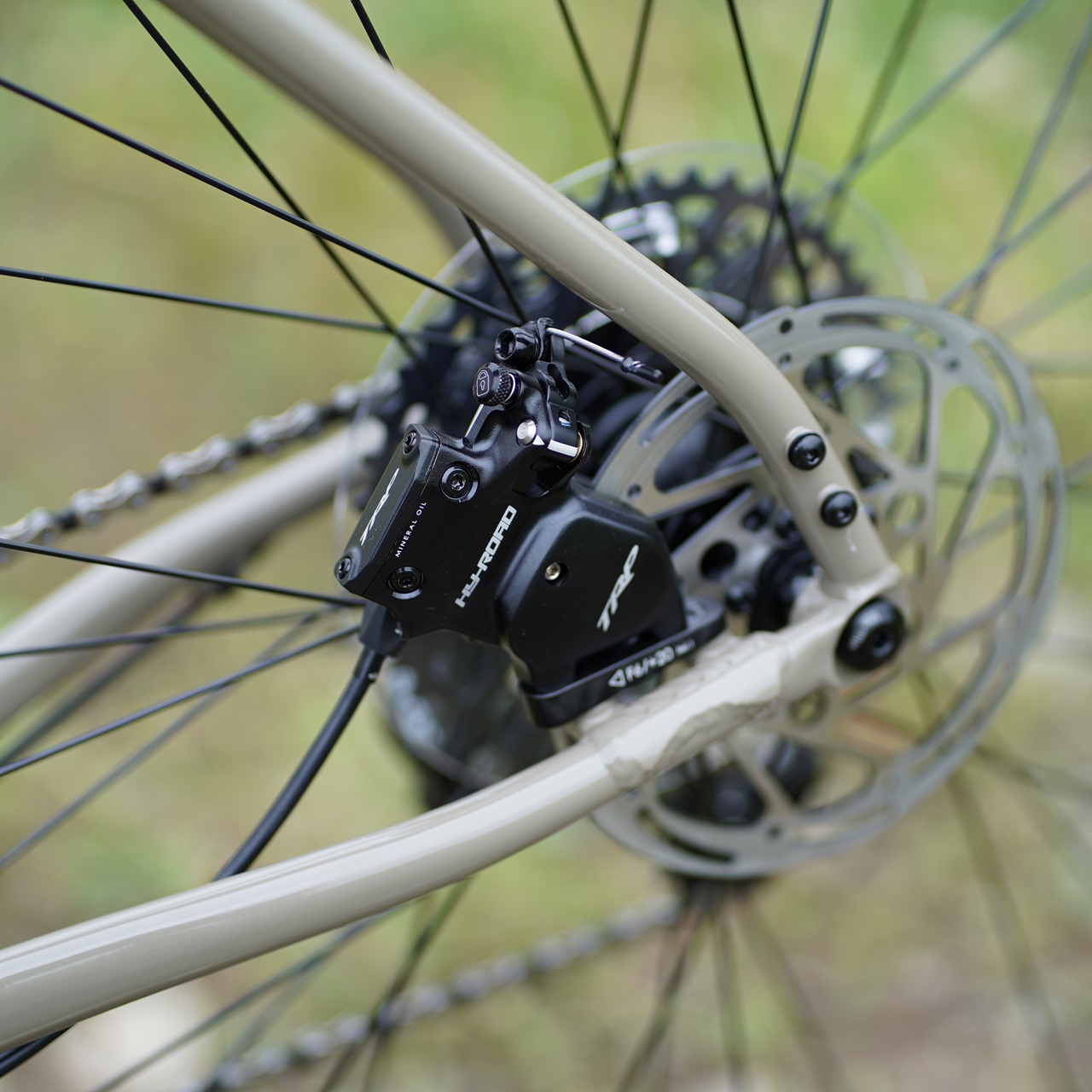 ブレーキはワイヤー引き油圧ディスクキャリパーのTRP HY/RD。