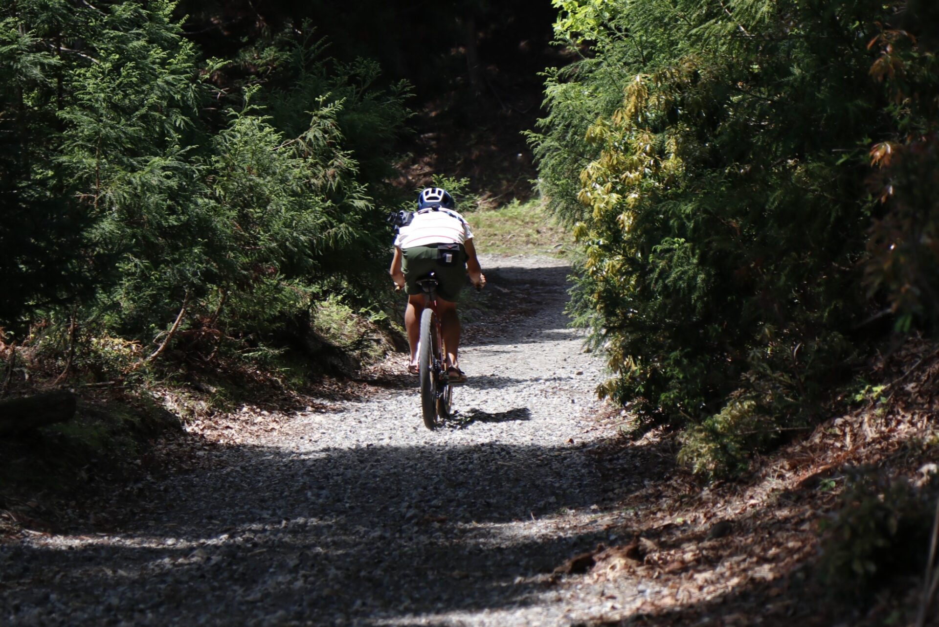 栃本河川公園からは、杉の木が山全体を覆う周山街道を通り、最後の裏京見峠を登ってゴールを目指します。