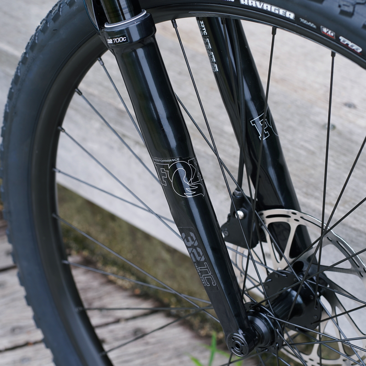 フロントフォークは天下のFOX製グラベルモデル、TC32 40mmストローク。