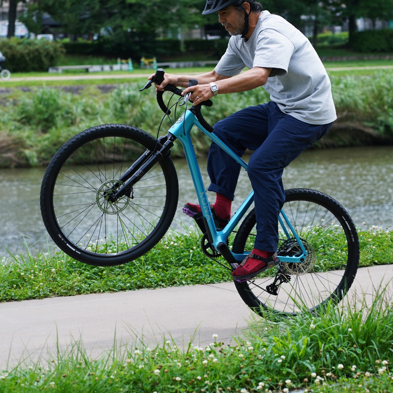 29erクラスの超ワイドタイヤクリアランスを備え、オフロードに振り切ったモデルかと思いきや、踏めば応える伸びやかな走りで長距離も楽々。