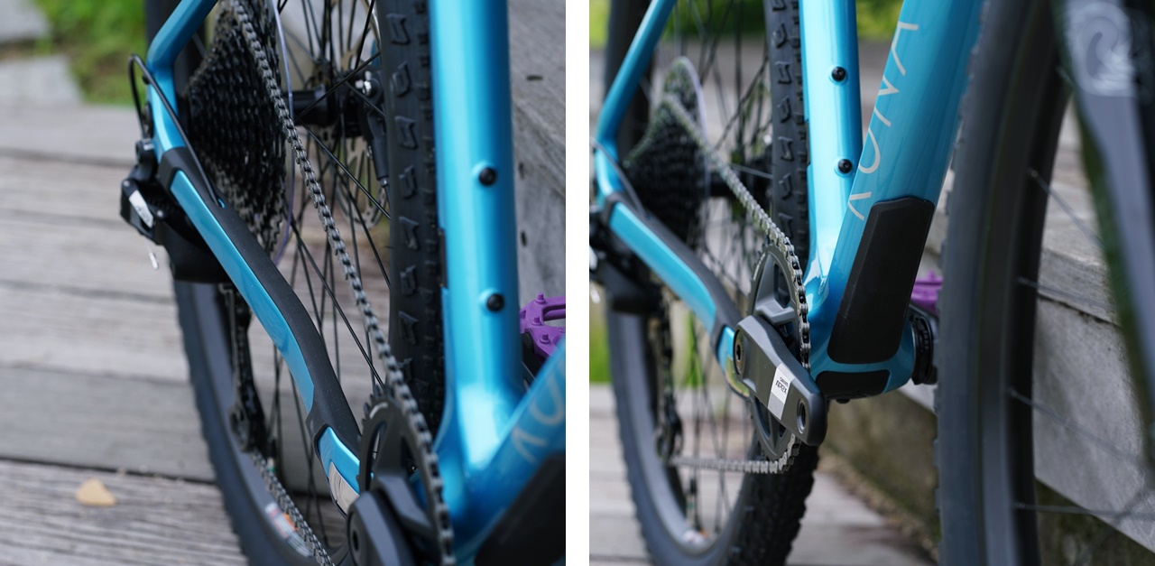 ダウンチューブ下面、チェーンステーなどを厳重保護してくれています。