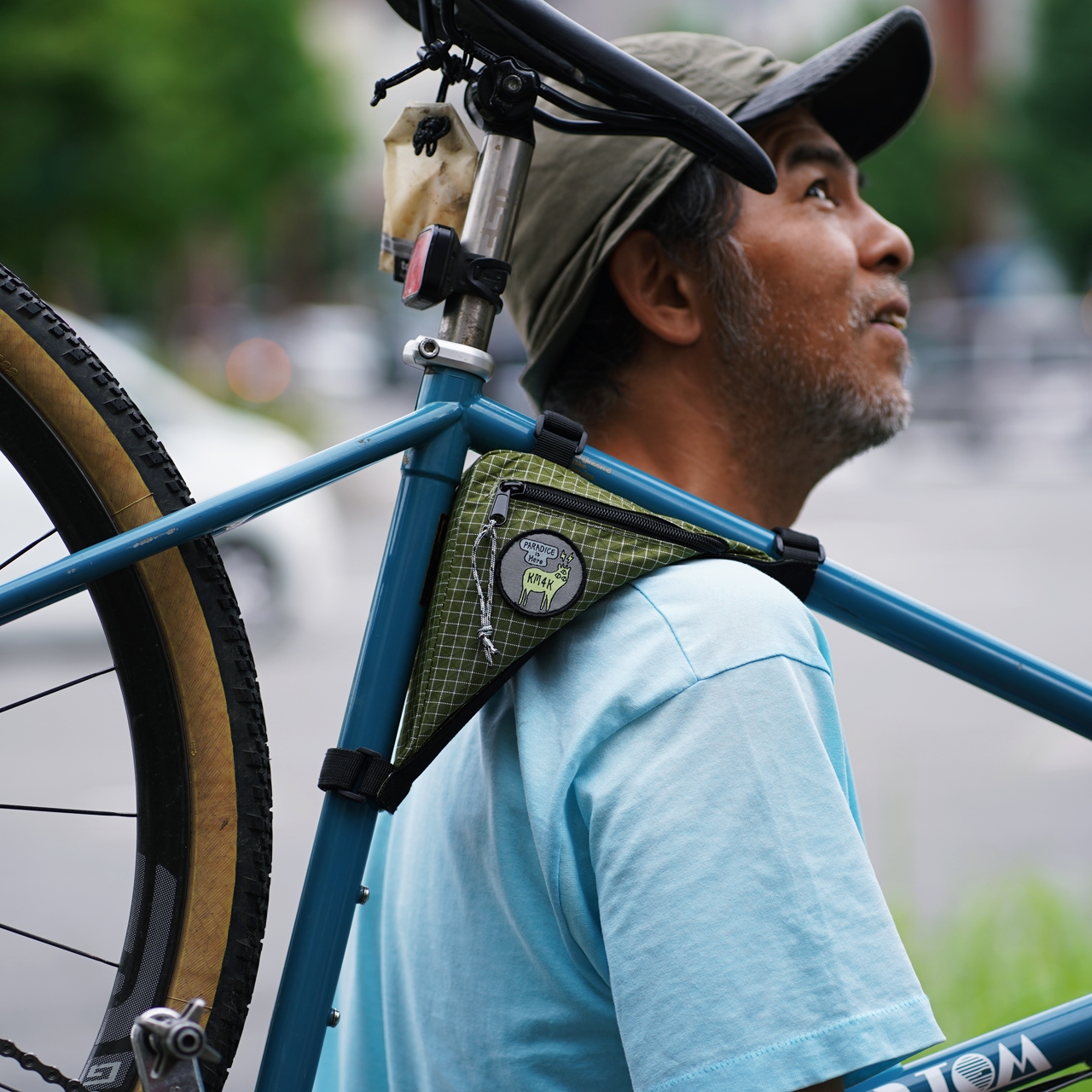山で自転車を担ぐためのショルダーパッドとして使えるフレームバッグはそう珍しいものではありませんでした。