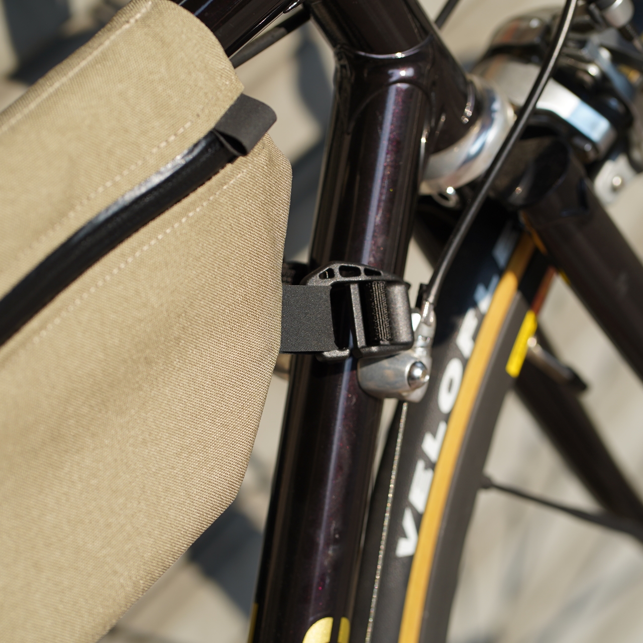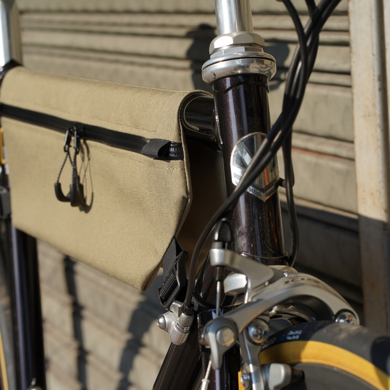 ※その構造上、基本的にクロモリフレーム推奨ですのでご注意を。トップチューブ径が太いカーボンバイクなどではファスナーが上に来すぎてしまう可能性あり。