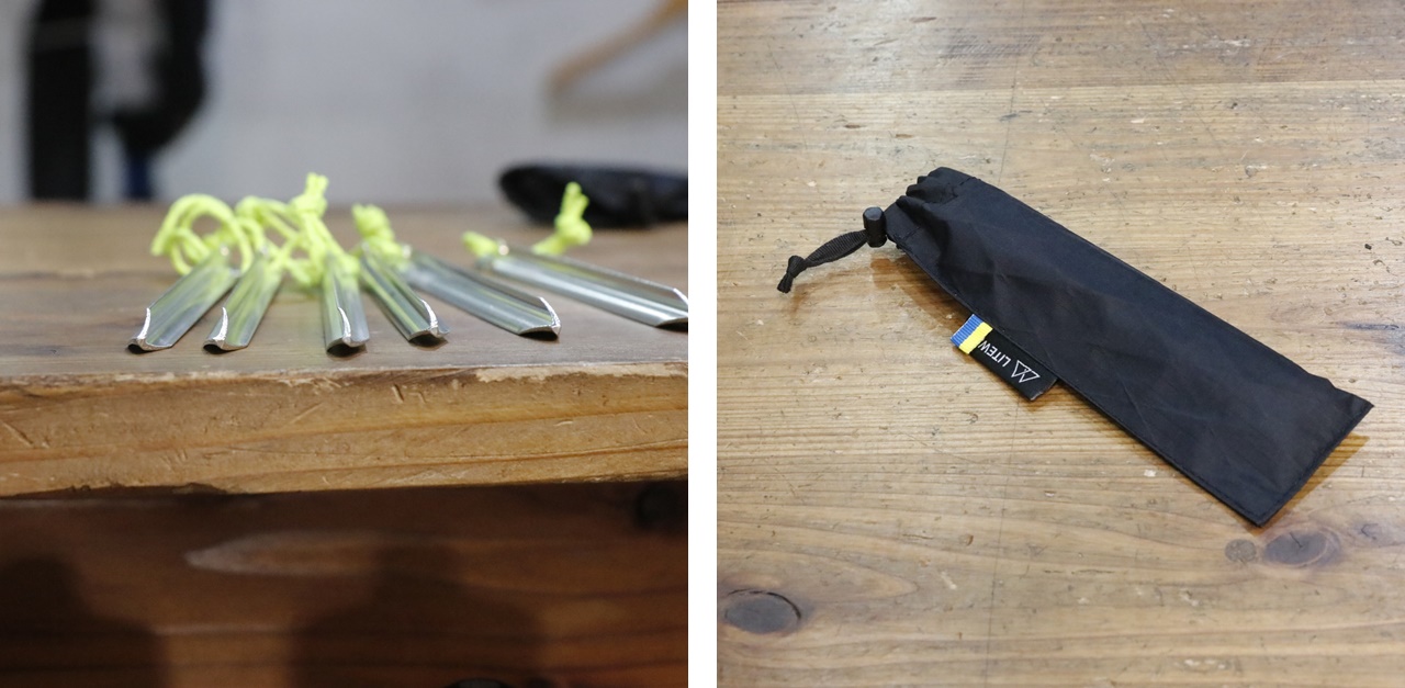 Y型の断面形状とねじれがポイント。付属のペグバッグもX-PAC生地なのが嬉しい!