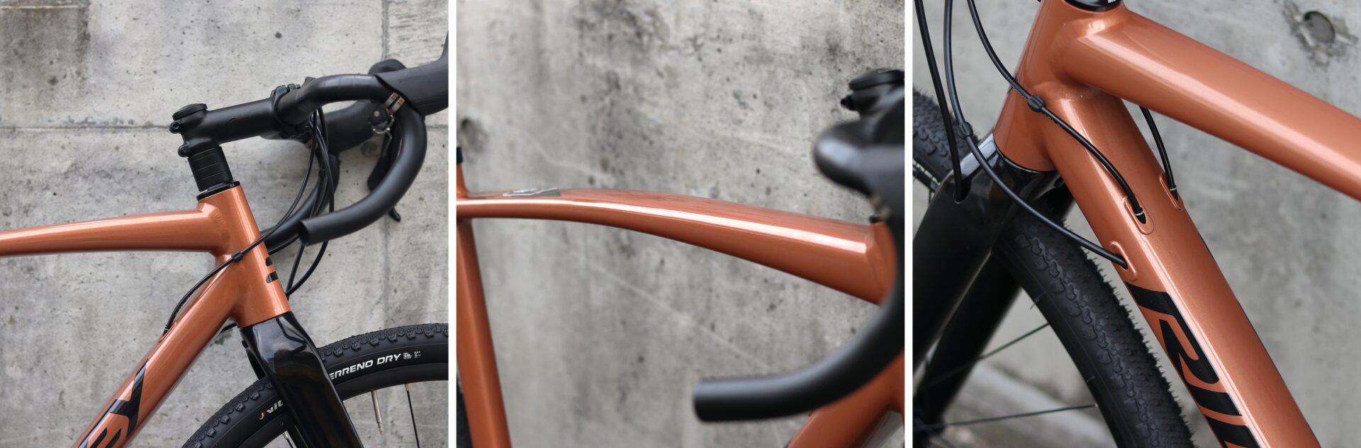 KANZO Aには、絶妙に低めのBBハイトや寝かしたヘッド角など、同じく太いタイヤの装着が可能なドロップバーといえども、やはりシクロクロス(同社にはシクロクロスモデルとしてX-NIGHTシリーズがラインナップ)とは用途の異なる、