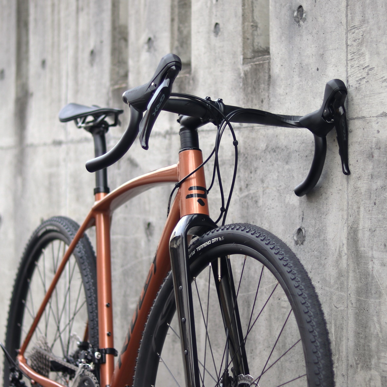 そこを支えるパーツには、信頼性高い SHIMANO GRX 2x10SPEED 油圧ディスクブレーキ コンポをフルに(ホイールもクランクもSHIMANO製)標準アッセンブル。