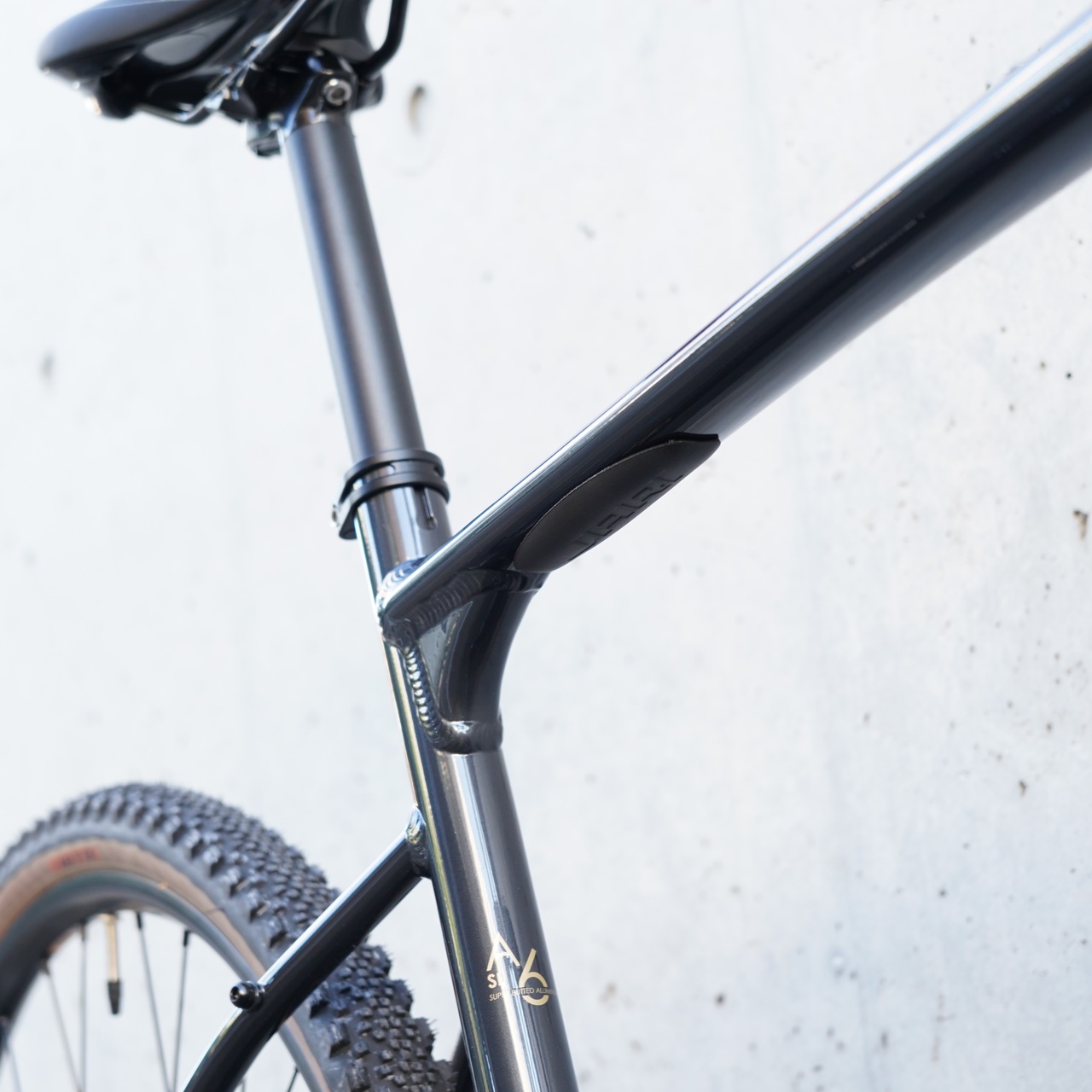 走りの肝となるのがシートチューブとの接合部が一段下方にオフセットされたドロップドシートステーの採用。