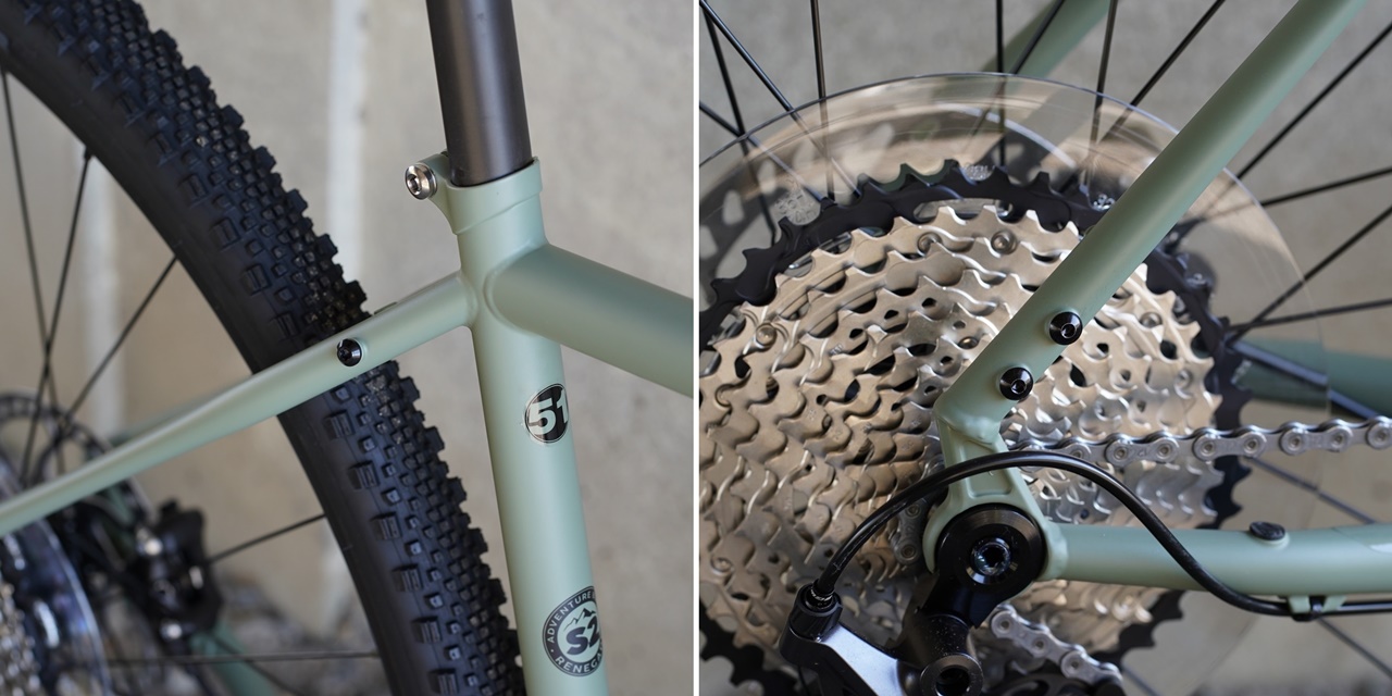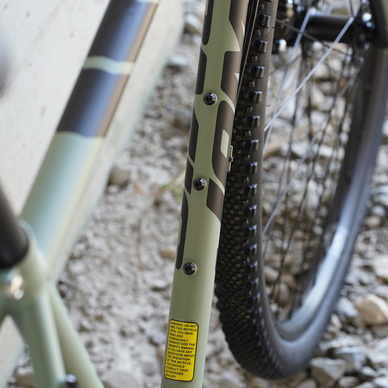 ダウンチューブはトリプルアイレットなので、カーゴケージを取り付けたり、ボトルケージの取り付け高さを選ぶことが出来ます。