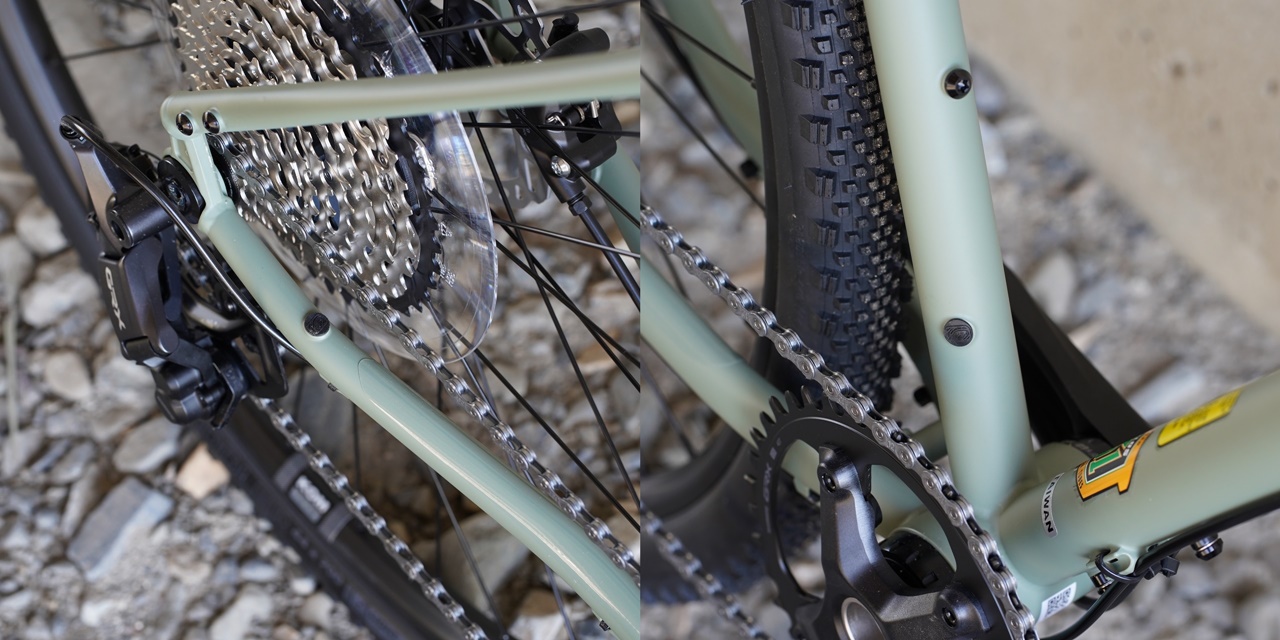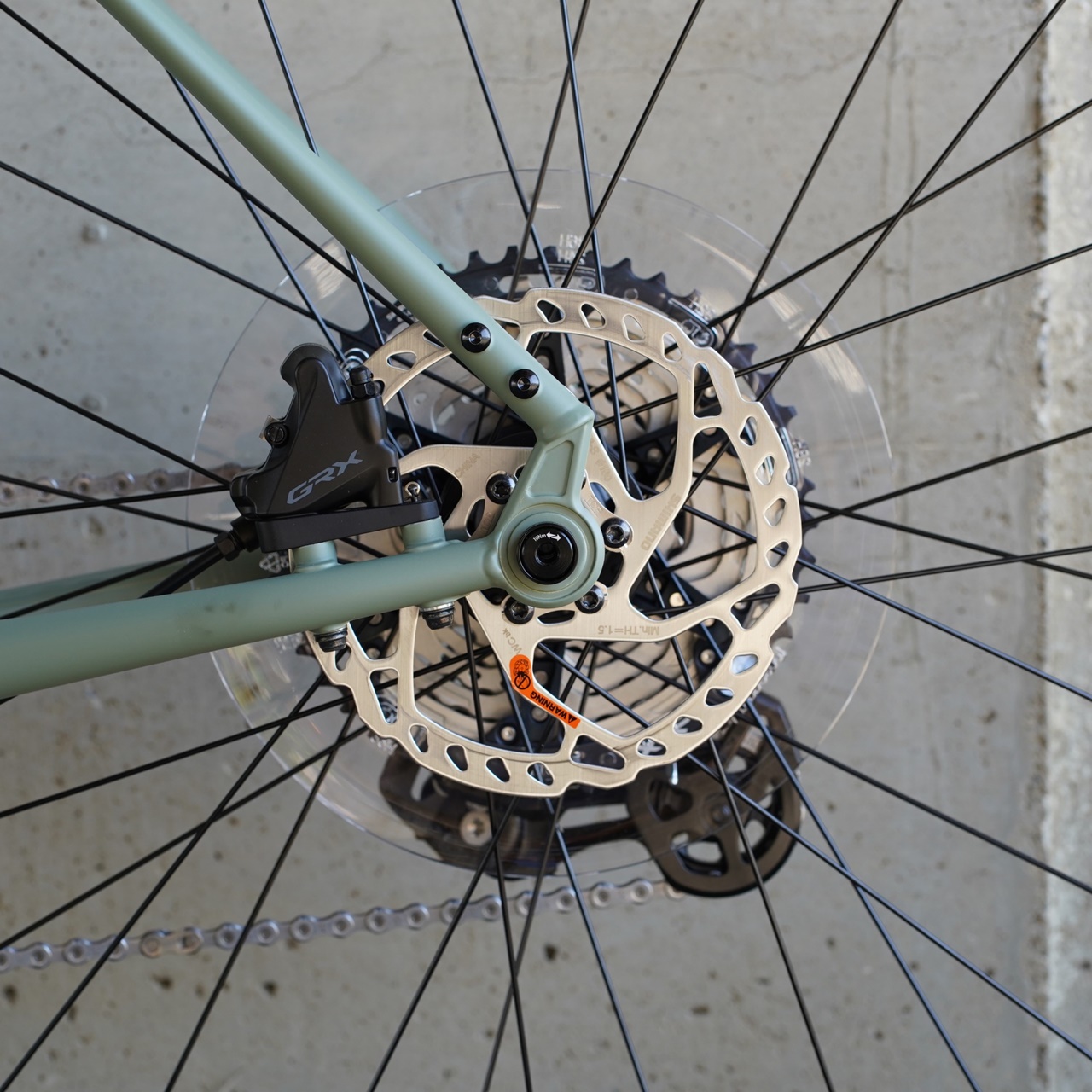 12mmスルーアクスル&フラットマウントブレーキとモダングラベルバイクの標準を抑えた規格はカスタムや補修も幅広い選択肢があり、末永く乗り続ける上で大切なポイント◎