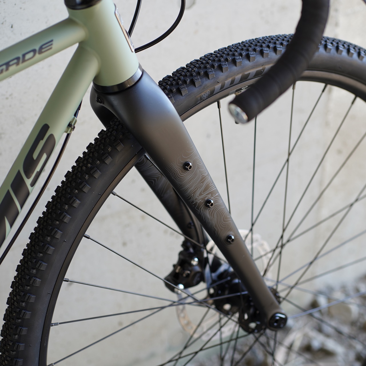 軽量かつ頑丈でカーゴケージだけでなくフロントラック取り付けにも対応するカーボンフォークも RENEGADE シリーズの大きな魅力のひとつ。