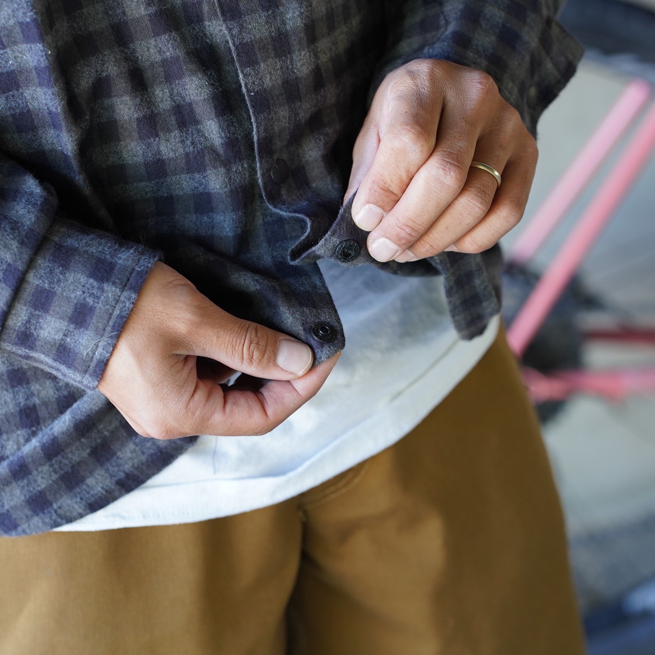 厚すぎるものだとちょっと使いにくいけど、このシャツは程よく通気性もある薄手のコットンネル。