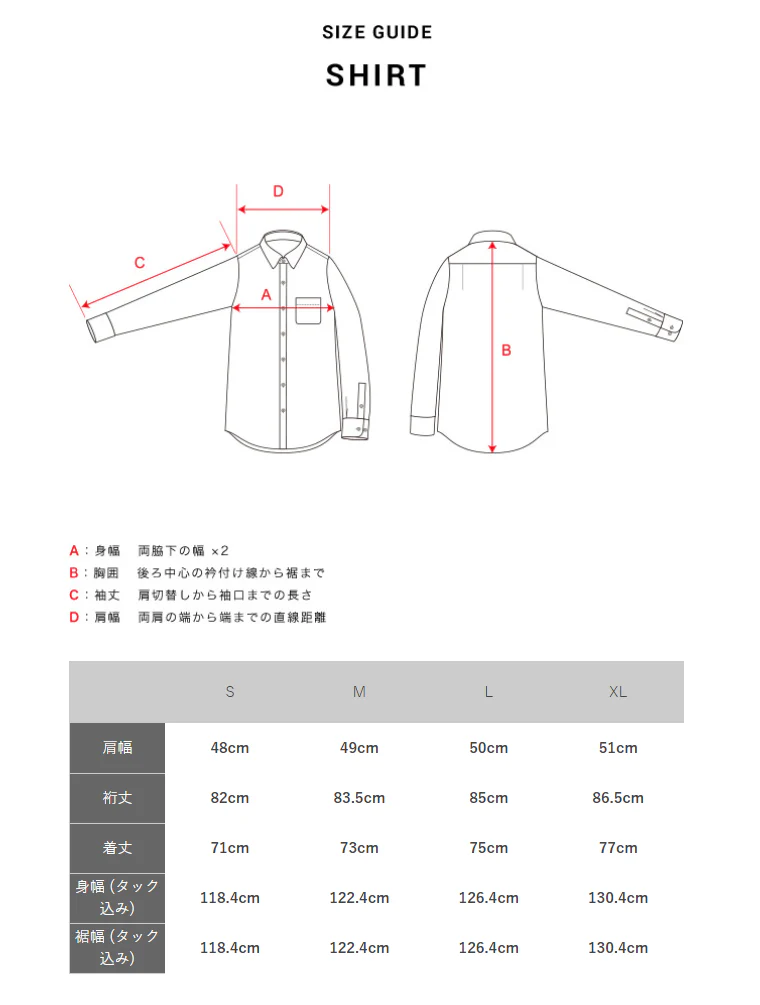 (身幅-肩幅-着丈-裾幅)cm