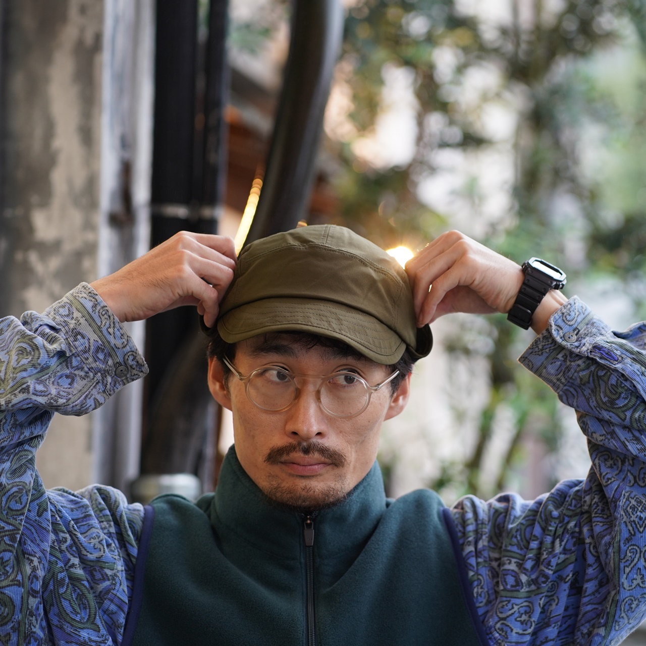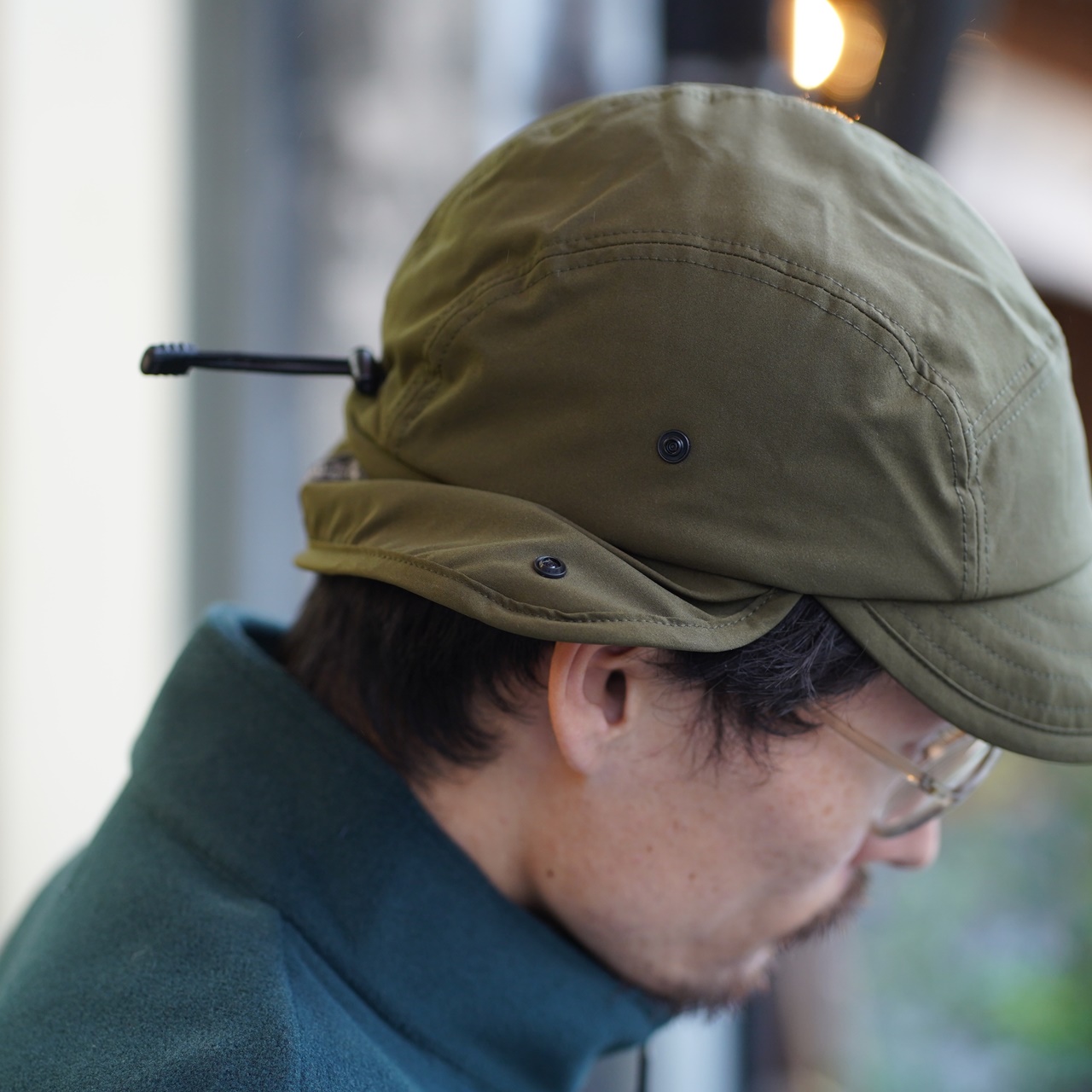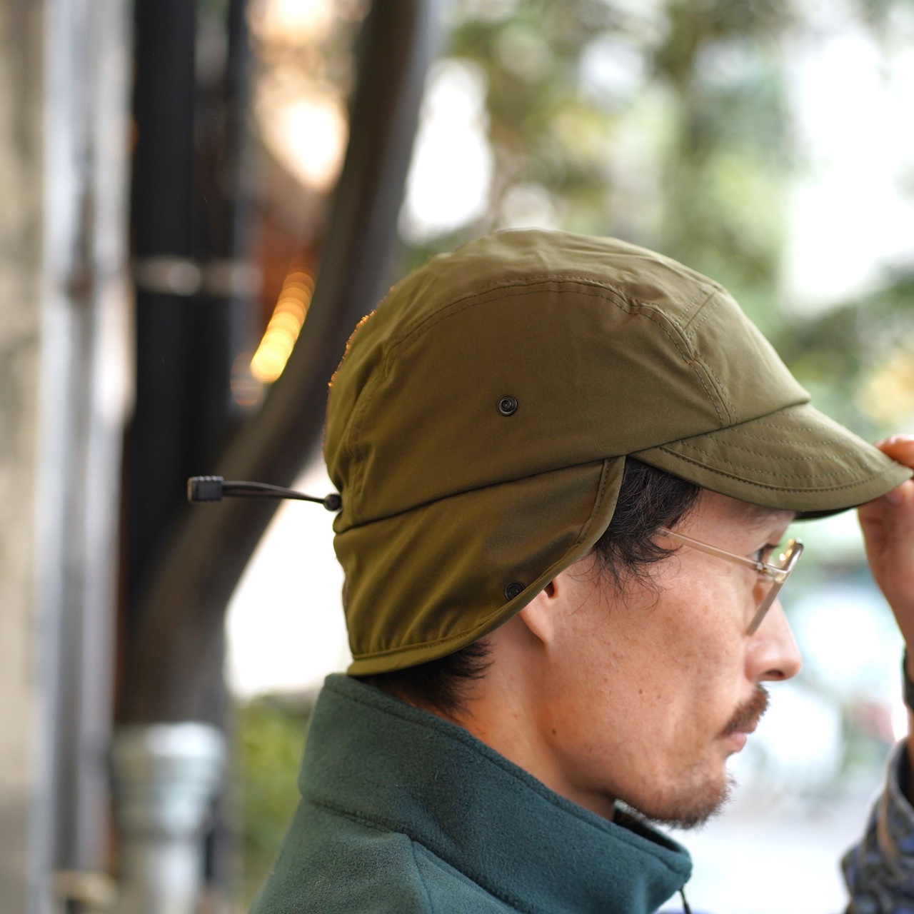 イヤーフラップはスナップボタンで跳ね上げOK