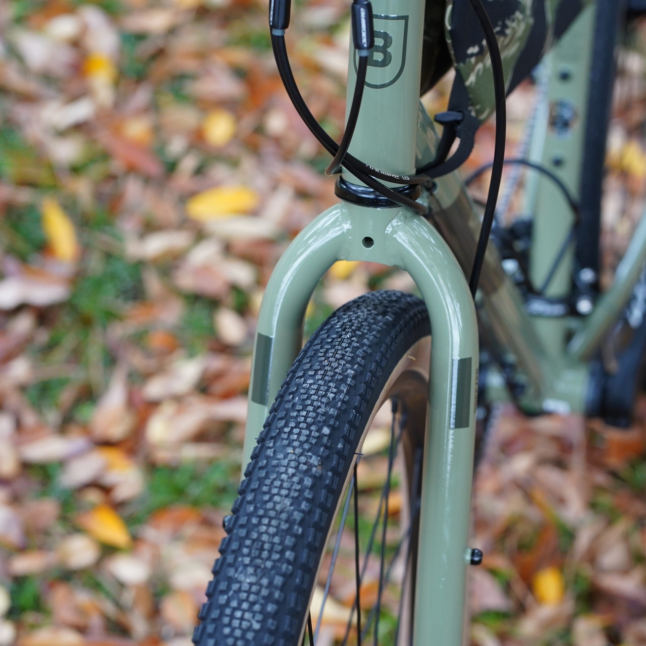 ●最大29×2.1インチ(700x53C相当)のワイドタイヤクリアランス⇒標準でもかなり太目の700X45cタイヤ採用。グラベルバイク以上MTB未満の高い走破性とクッション性