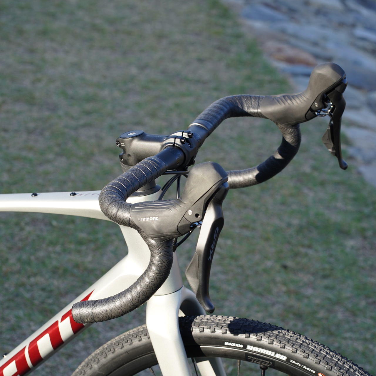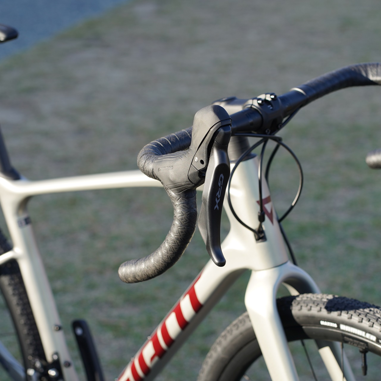 SHIMANO GRX 610 2x12sコンポ採用。ロード並みの高速巡行から厳しいダートの登りまであらゆる速度域に対応。タイヤも最初からチューブレス、コクピット周りの快適性も妥協なくトータルで演出!