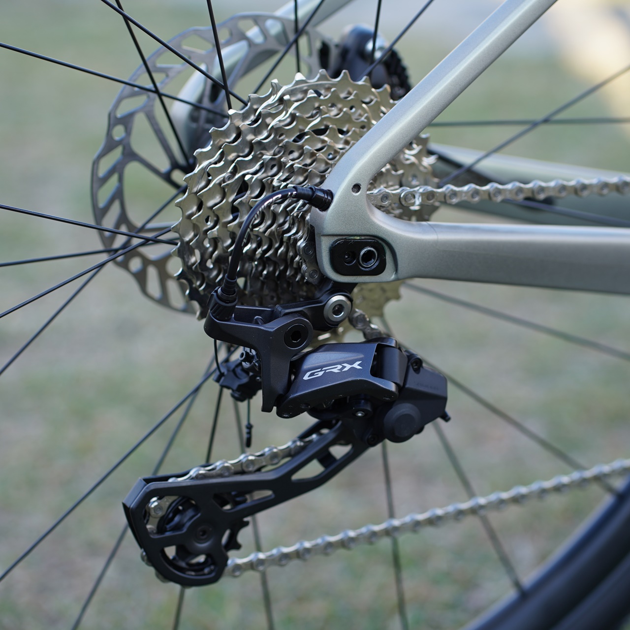 メインコンポーネントはSHIMANOの最新型機械式グラベルコンポ、GRX 610 2x12speed。もちろん油圧ディスクブレーキ仕様。