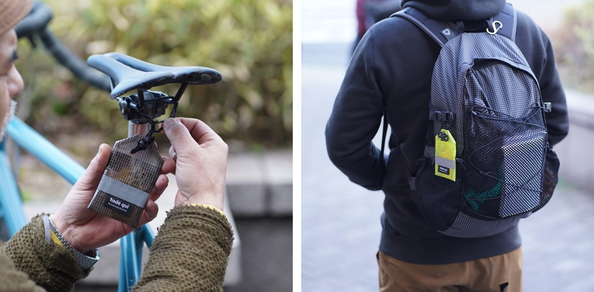 装着位置としてはサドル後方がオススメですが、ストラップアジャスターとフックにより、バックパックなど様々な箇所に取り付けが可能です。