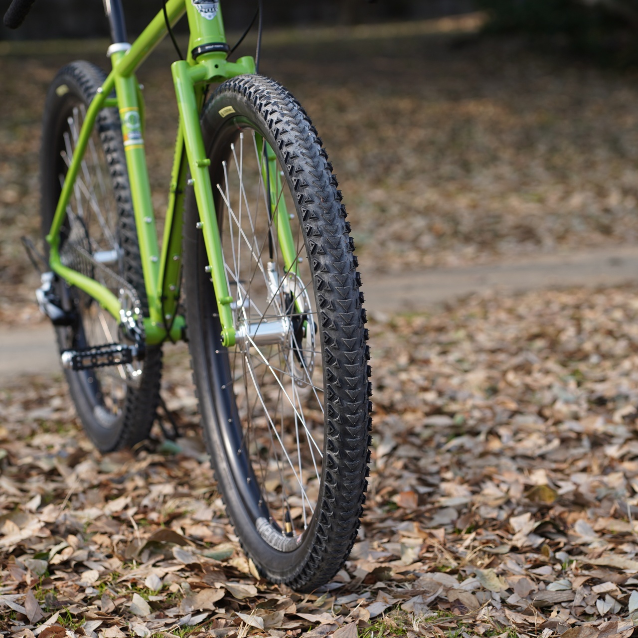 もちろんルックスだけではなく、悪路でのグリップはもちろん、意外と舗装路でも転がりよしとの噂を信じてのチョイス。
