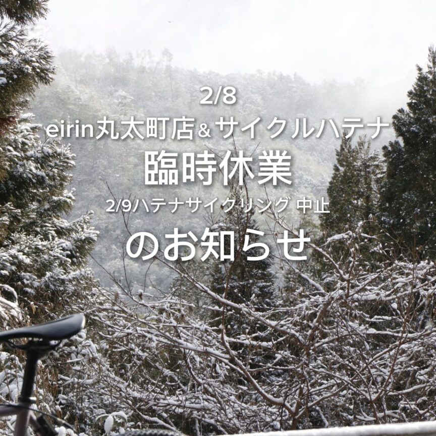 誠に勝手ながら、eirin丸太町店、サイクルハテナともに臨時休業とさせていただきます。