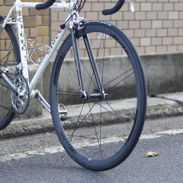 クロモリフレームのしなやかさに抜けの良いROLF PRIMAの組み合わせは、素直かつシャープに加速するとても気持ちの良いライドフィーリング◎