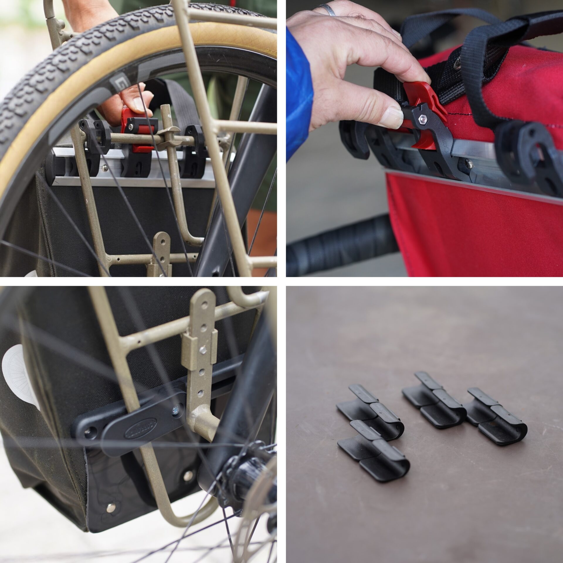 キャリアの取付部は特許取得済みのクイック クリップ パニア システムが採用。