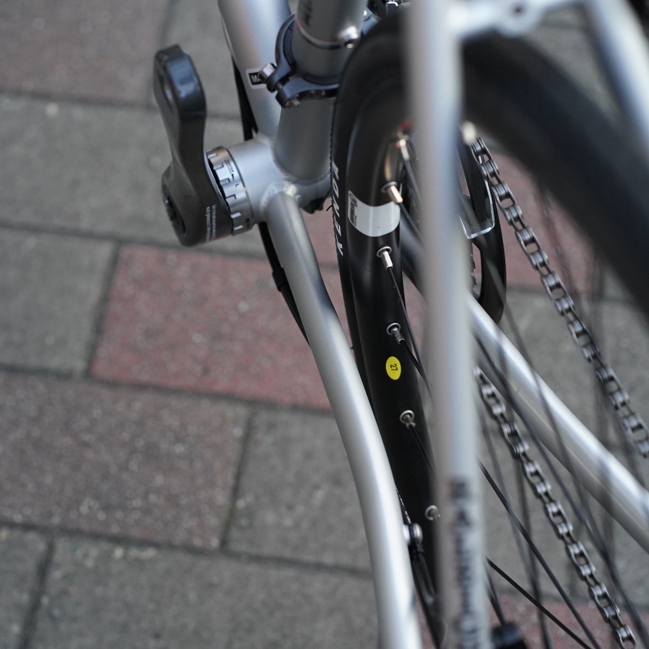●クラシカルなホリゾンタル基調のクロモリフレーム、シフトワイヤーは内装式ですっきりとしたルックス