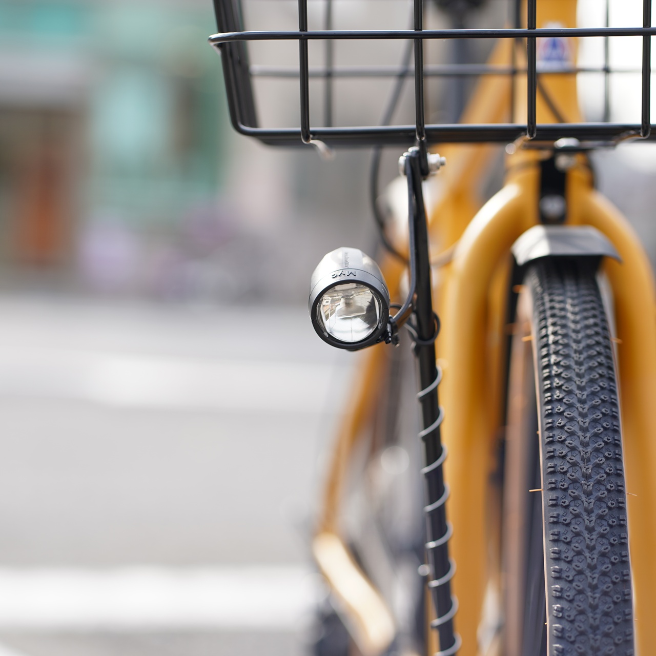 フロントバスケットに前後フルフェンダー、センタースタンドにダイナモライトと全部盛りのコミューター仕上げ。