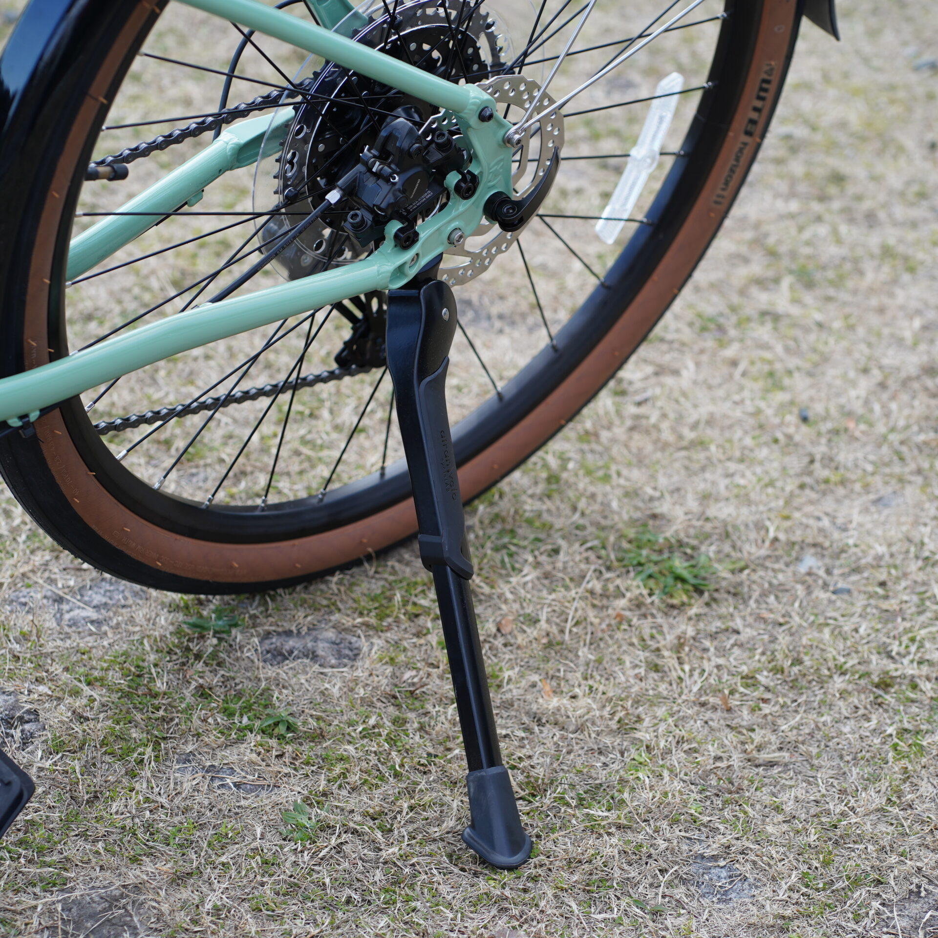 街乗りのマストアイテム、キックスタンドが標準装備されています。