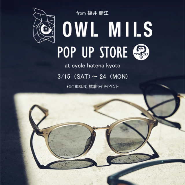 from 福井県・鯖江 サングラスブランド【 OWL MILS / アウルミルズ 】POP UP STORE at サイクルハテナ を開催!(試着サイクリング会もします!)