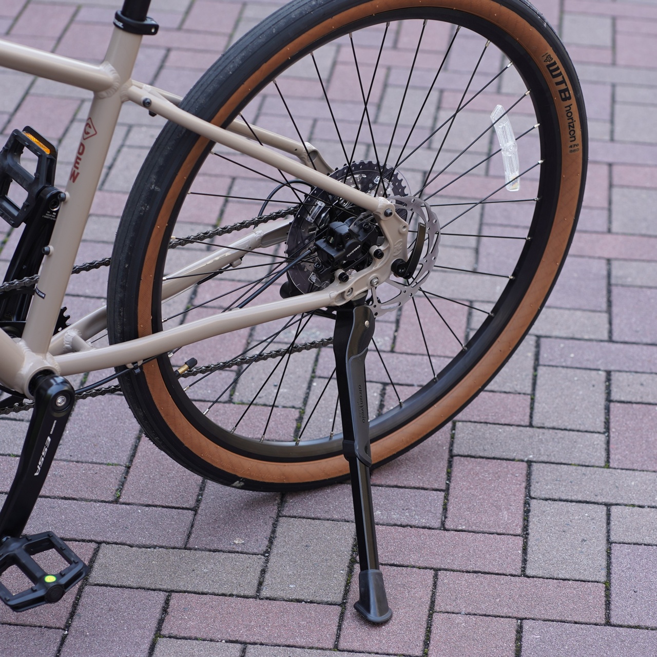 700cよりも一回り小さい650Bタイヤは足付き良く安心、ちょっと太めな47mm幅で段差も排水溝も河川敷も問題無くクリアできます。
