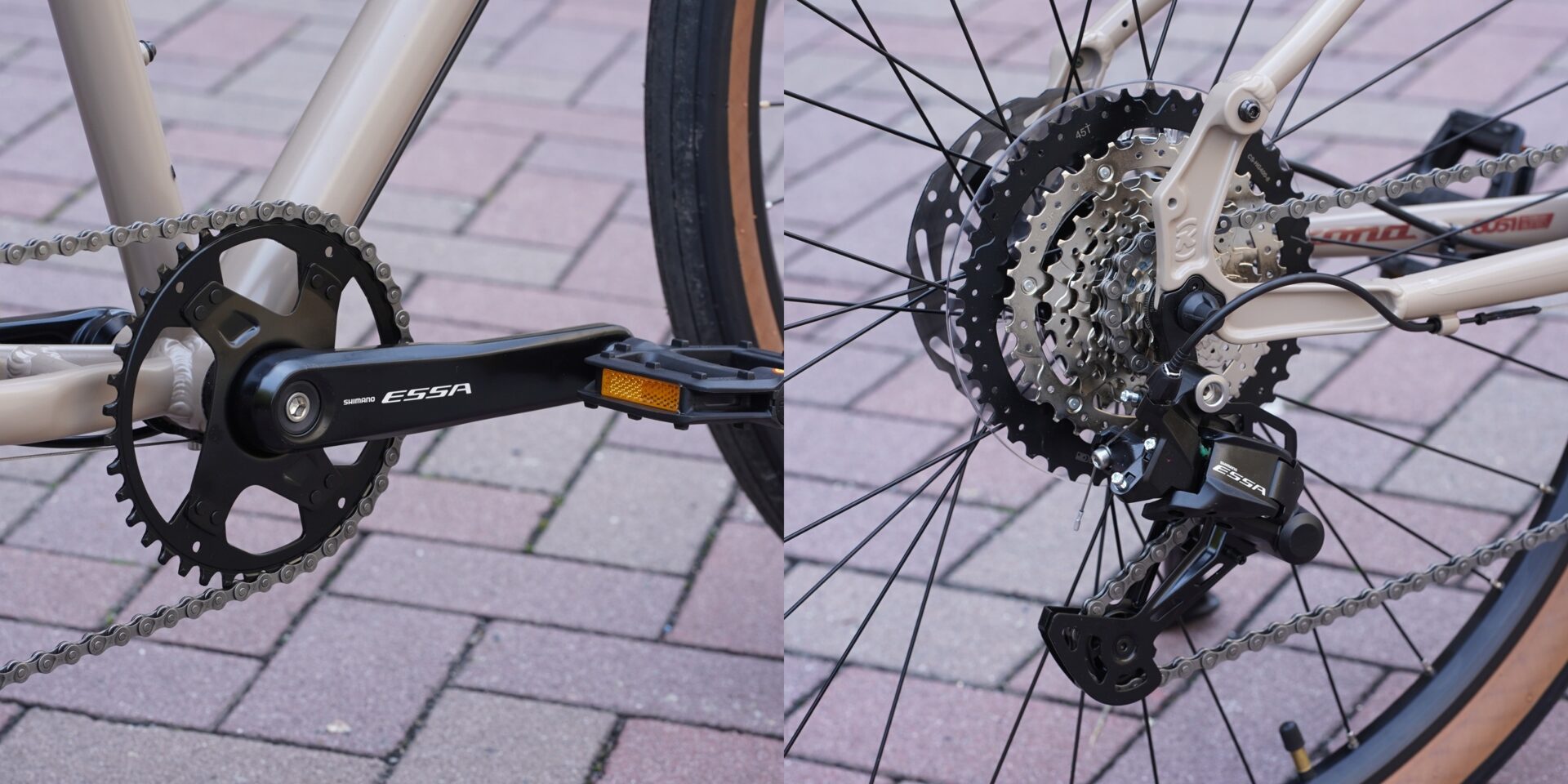 2025年より、ちょっと使いづらいフロント2xコンポ ⇒ 操作明快・快適なSHIMANO ESSA 1×8 speedコンポへ。ブレーキも機械式 ⇒ 油圧式へと進化。より現代的なスペックになったのはかなり嬉しい。