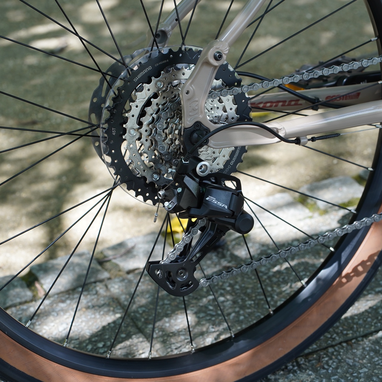 8速ながら、11-45Tとワイドなギアレシオはサイクリングに挑戦した時に大きな助けとなります。