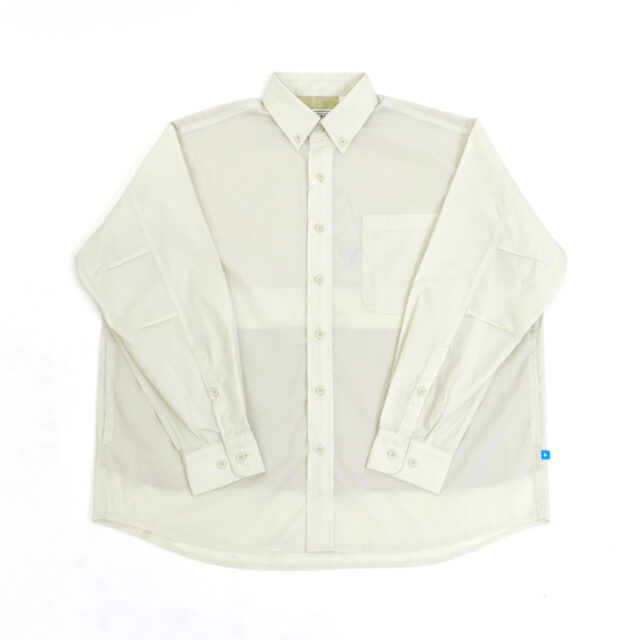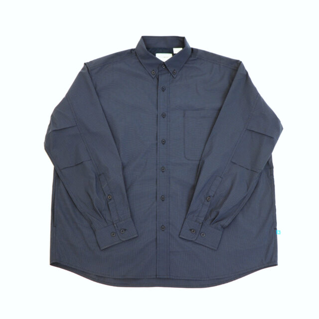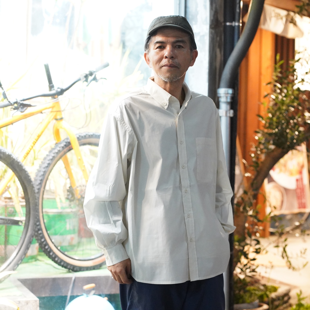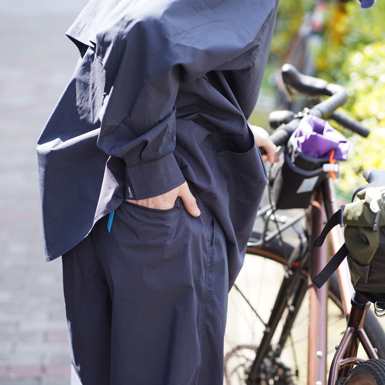 シャツはオーバーサイズシルエットでウィンドシェルがわりにがばっと羽織るのに最適。