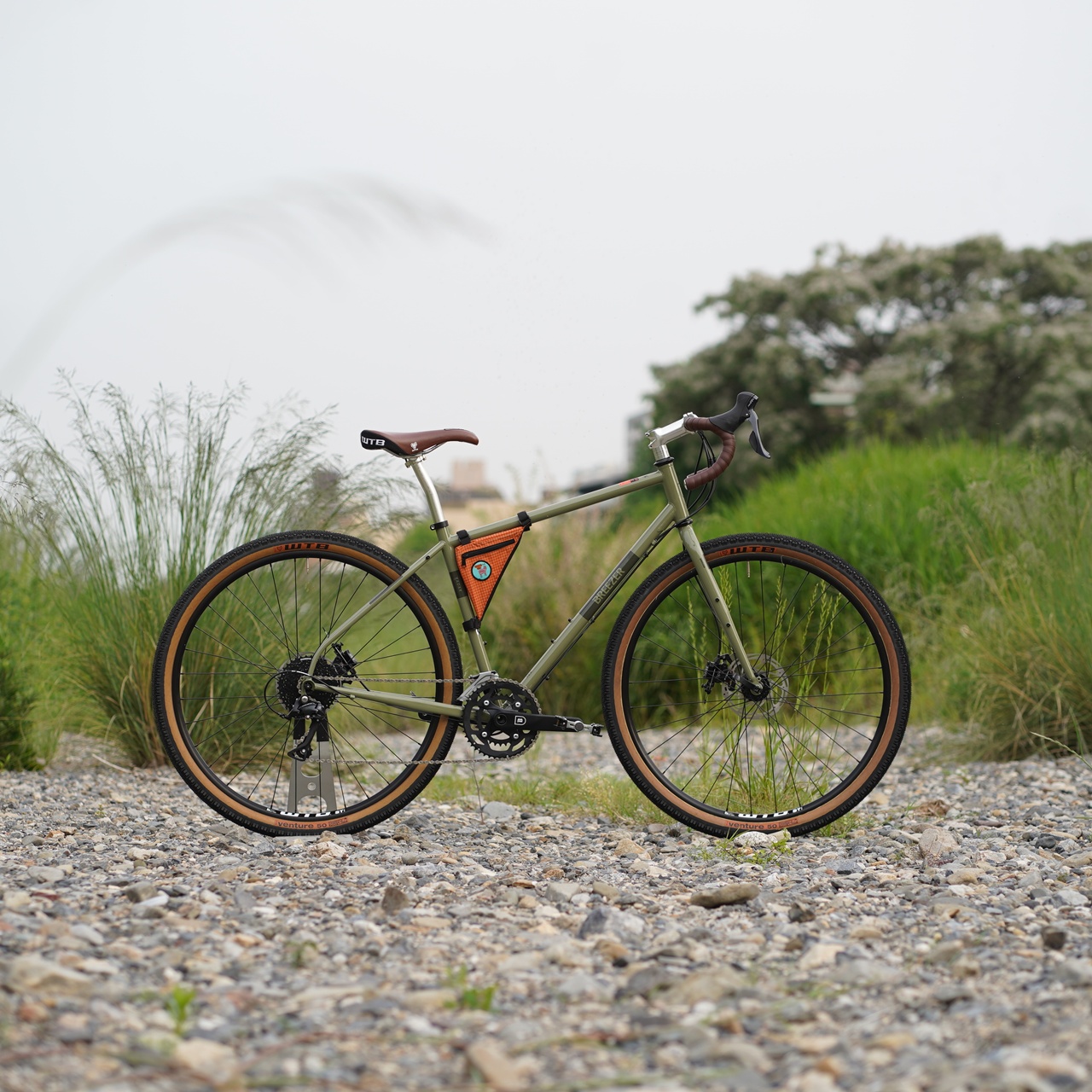 タイヤクリアランスは超ワイド、ジオメトリーもロードバイクとは全く異なるどっしり型。