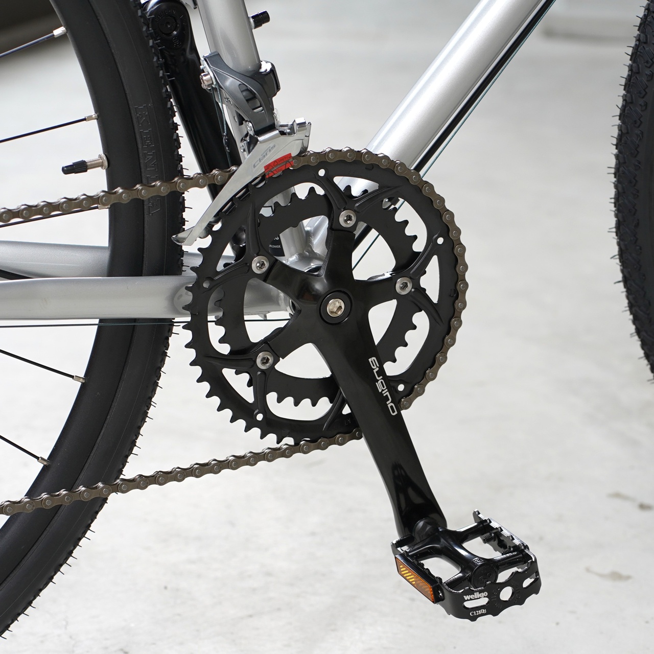 細身でシンプルなフレームに合うSUGINOクランク。