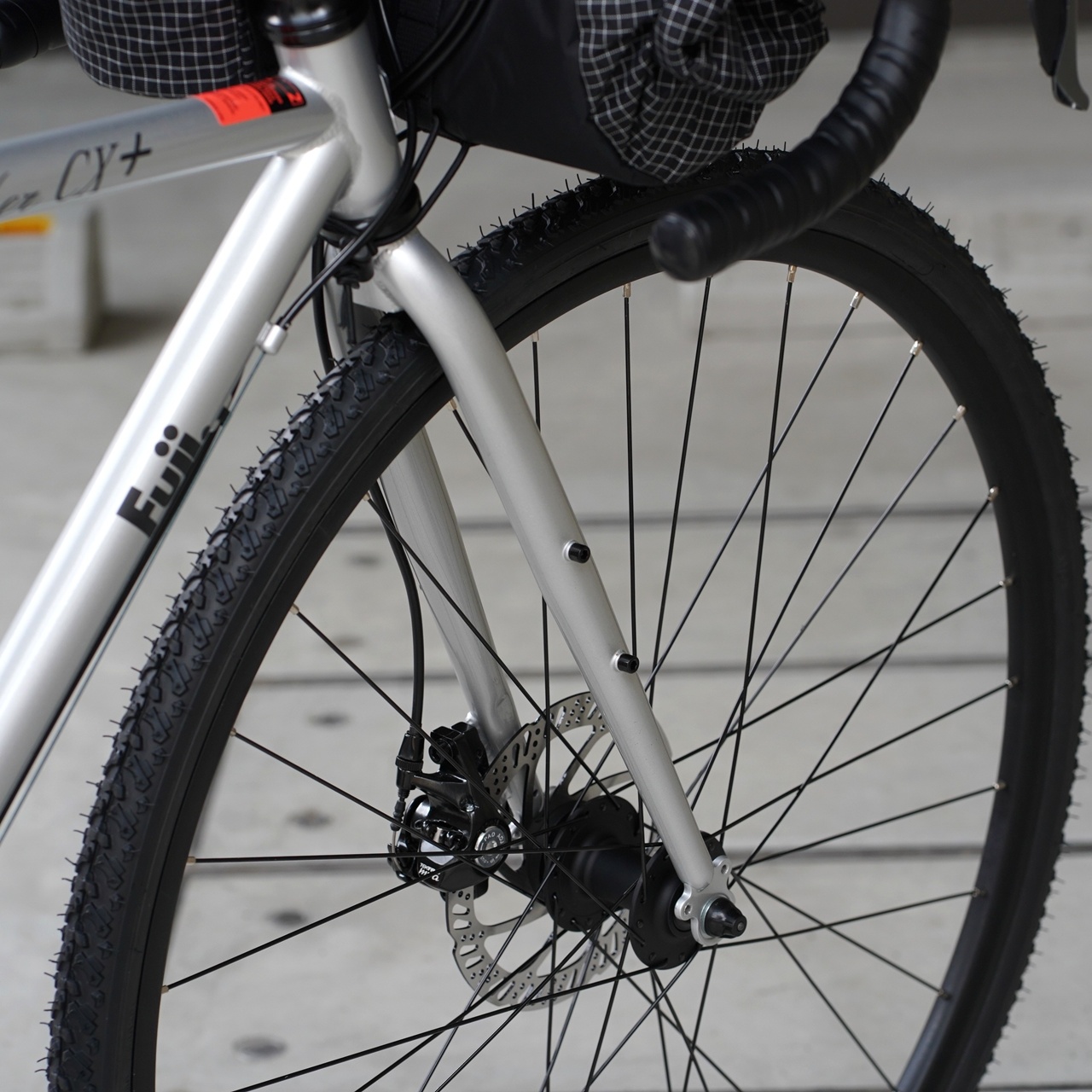 FUJIの超ロングセラーモデルであるシングルスピードバイク FEATHER をデザインソースに、やや太めのタイヤが履けるシクロクロスをベースとしたジオメトリでデザインされている FEATHER CX+.