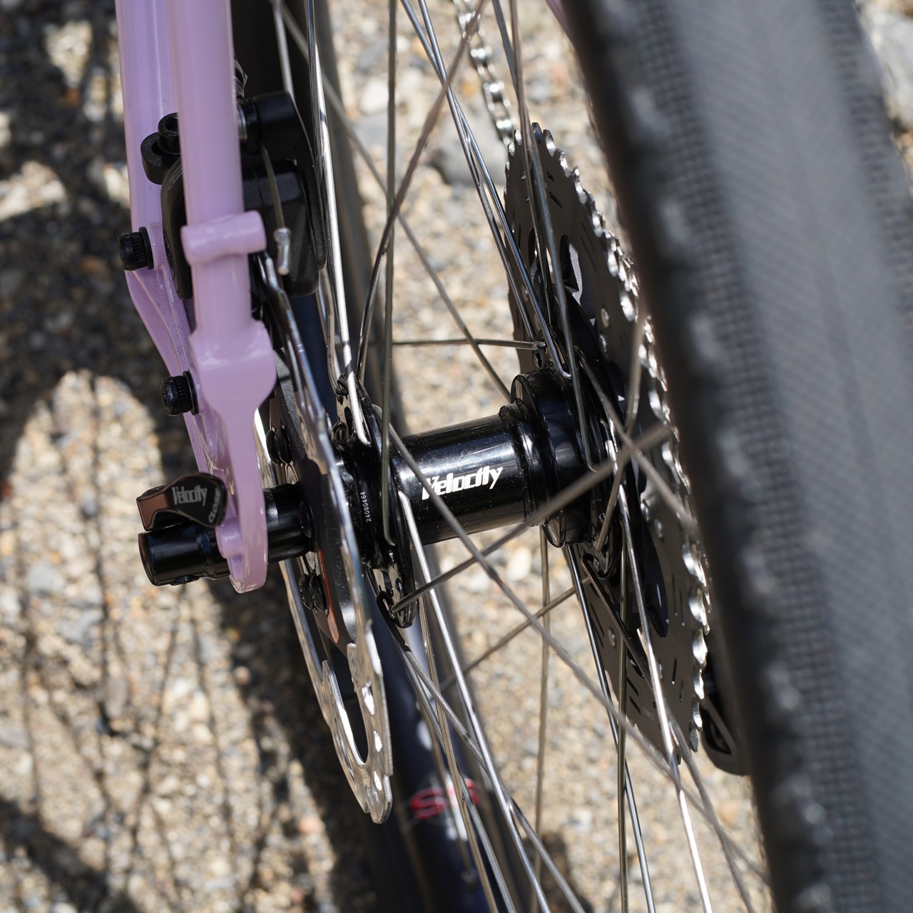650Bグラベルならおススメ度No.1軽量リム、VELOCITY BLUNT SSに同社RACE HUBを組み合わせ。